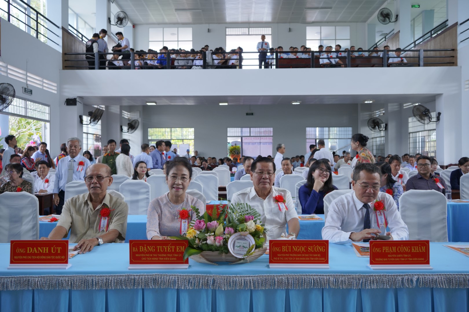 Buổi lễ vinh dự đón tiếp ông Danh Út - Nguyên Phó Chủ tịch Hội đồng dân tộc của Quốc hội; bà Đặng Tuyết Em - Nguyên Phó Bí thư thường trực Tỉnh uỷ, nguyên Chủ tịch Hội đồng nhân dân tỉnh Kiên Giang; ông Bùi Ngọc Sương - Nguyên Phó Trưởng Ban chỉ đạo Tây Nam Bộ, nguyên Chủ tịch UBND tỉnh Kiên Giang; ông Phạm Công Khâm - Nguyên Uỷ viên Ban Thường vụ Tỉnh uỷ, Trưởng ban Tuyên giáo Tỉnh uỷ tỉnh Kiên Giang, ông Lâm Hoàng Sa - Nguyên Uỷ viên Ban Thường vụ Tỉnh uỷ, nguyên Trưởng Ban dân vận Tỉnh uỷ tỉnh Kiên Giang cùng các nguyên lãnh đạo khác. Bên cạnh đó, chương trình còn chào đón sự hiện diện của ông Huỳnh Hoàng Sơn - Phó Bí thư Đảng uỷ UBND tỉnh An Giang, quý thầy cô là cựu cán bộ, giáo viên từng công tác tại trường trước và sau năm 1975, Ban Giám hiệu nhà trường, tập thể cán bộ, giảng viên đương nhiệm và đông đảo cựu học sinh, sinh viên qua các năm cũng như các em sinh viên đang học hiện nay. Sự hội ngộ của nhiều thế hệ đã tạo nên một bức tranh đẹp về truyền thống “tôn sư trọng đạo”, về hành trình mà ngôi trường này đã đi qua suốt 60 năm.