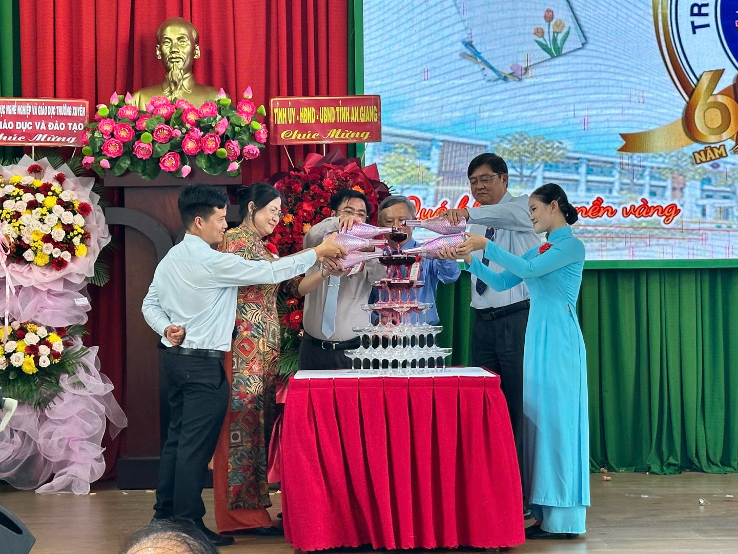 Một khoảnh khắc đặc biệt ý nghĩa của chương trình là phần tặng hoa tri ân dành cho Ban Giám hiệu qua các thời kỳ. Hình ảnh các thế hệ thầy cô đứng chung trên sân khấu đã gợi lên những kỷ niệm đẹp về một chặng đường dài đầy tâm huyết. Chương trình giao lưu nhân ngày kỷ niệm cũng mang lại nhiều cảm xúc với những câu chuyện, những kỷ niệm được chia sẻ giữa thầy cô, cán bộ lão thành và cựu học sinh. Bên cạnh đó, chuỗi hình ảnh thể hiện các thời kỳ phát triển của trường được thể hiện sinh động, giúp người xem như được quay ngược thời gian, nhìn lại từng bước chuyển mình đầy tự hào qua suốt 60 năm hình thành và lớn mạnh. Không khí càng ấm áp hơn khi các đại biểu, khách mời cùng ban lãnh đạo nhà trường nâng ly chúc mừng chặng đường vẻ vang đã qua, cũng như hướng về tương lai tràn đầy hi vọng với nhiều thành công mới.