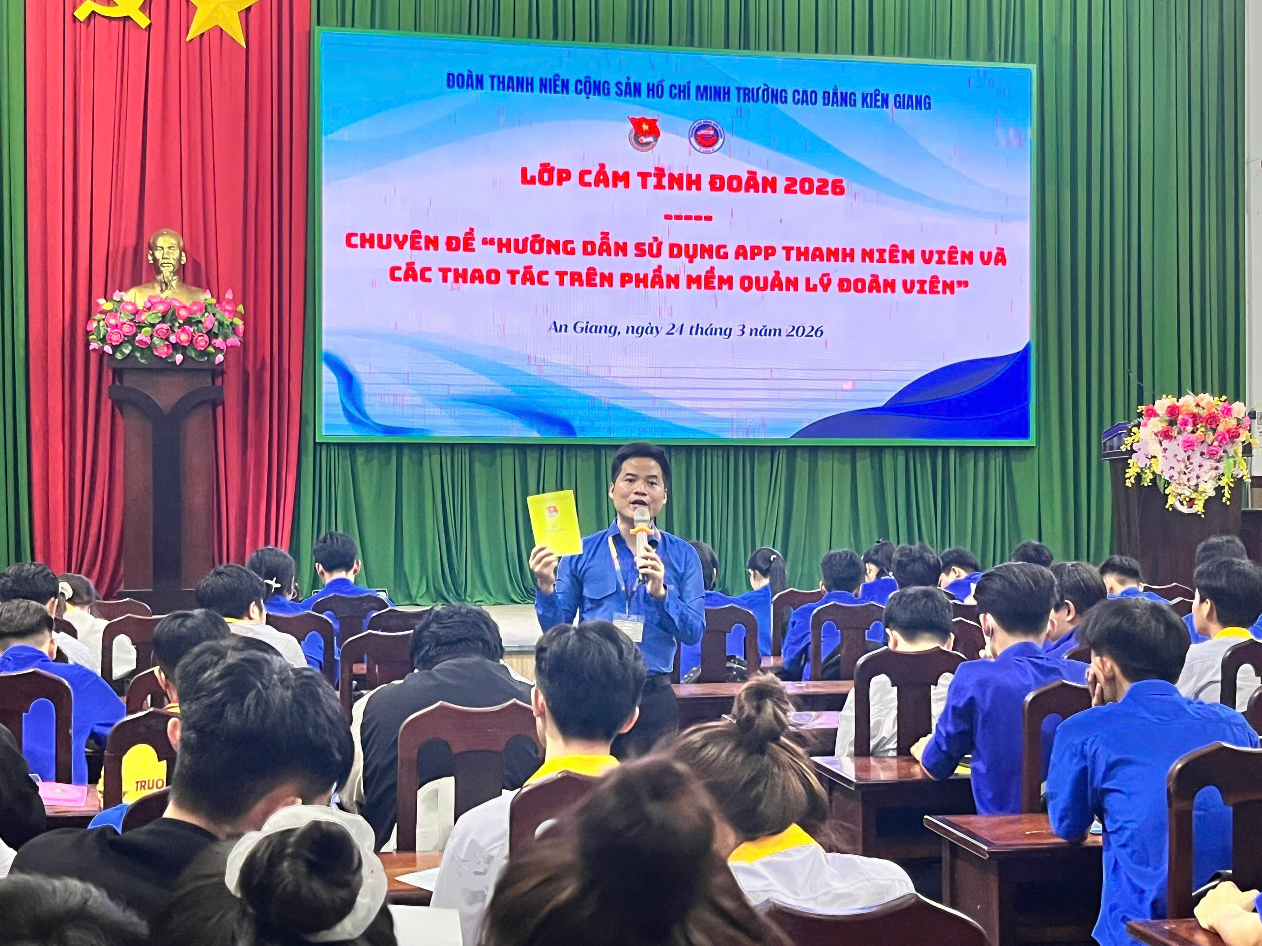 Để chuẩn bị cho buổi lễ kết nạp đoàn viên mới, Đoàn trường đã tổ chức các buổi bồi dưỡng kết nạp đoàn vào ngày 24/3/2026. Lớp bồi dưỡng tập trung vào 3 chuyên đề: Lịch sử Đoàn TNCS Hồ Chí Minh và Giới thiệu về Đoàn trường Cao đẳng Kiên Giang; Hướng dẫn cài đặt và sử dụng App Thanh niên Việt Nam và Hướng dẫn viết sổ đoàn; 02 chuyên đề học tập và làm theo tư tưởng, đạo đức và phong cách Hồ Chí Minh. Buổi học góp phần thúc đẩy tinh thần phấn đấu và nhiệt huyết trong mỗi đoàn viên, đồng thời gắn việc kết nạp đoàn viên mới với công tác xây dựng, củng cố, nâng cao chất lượng tổ chức cơ sở Đoàn.