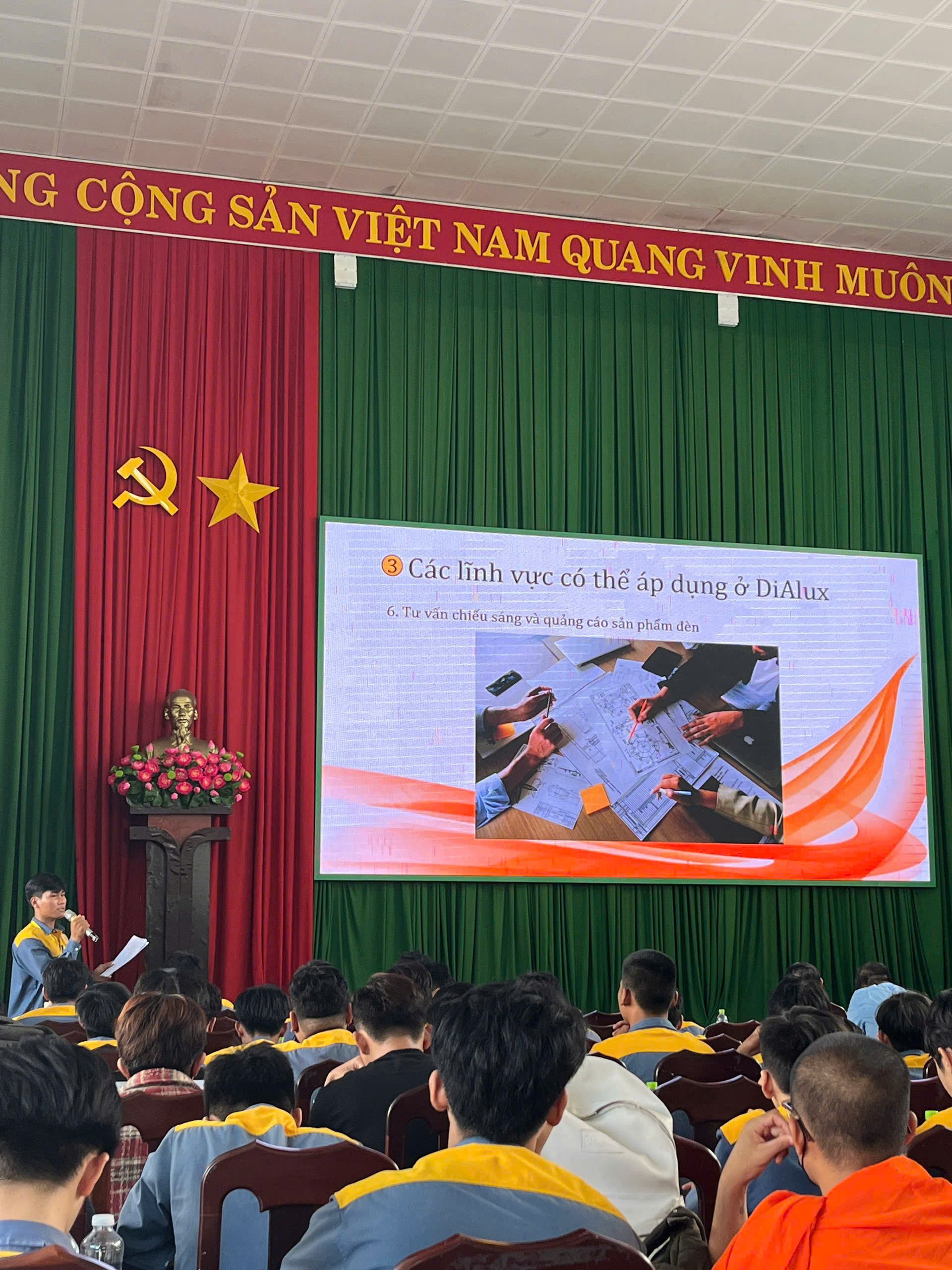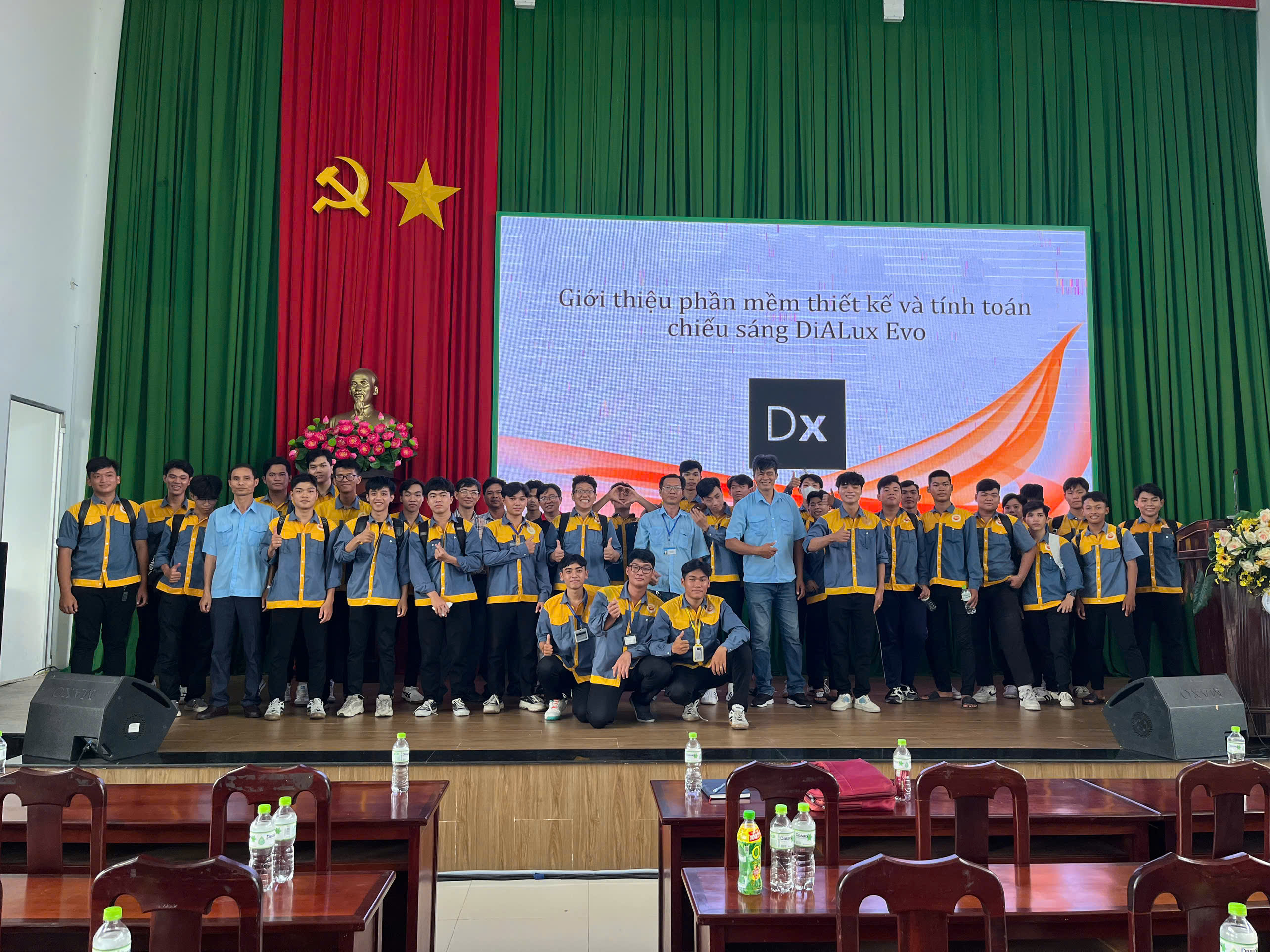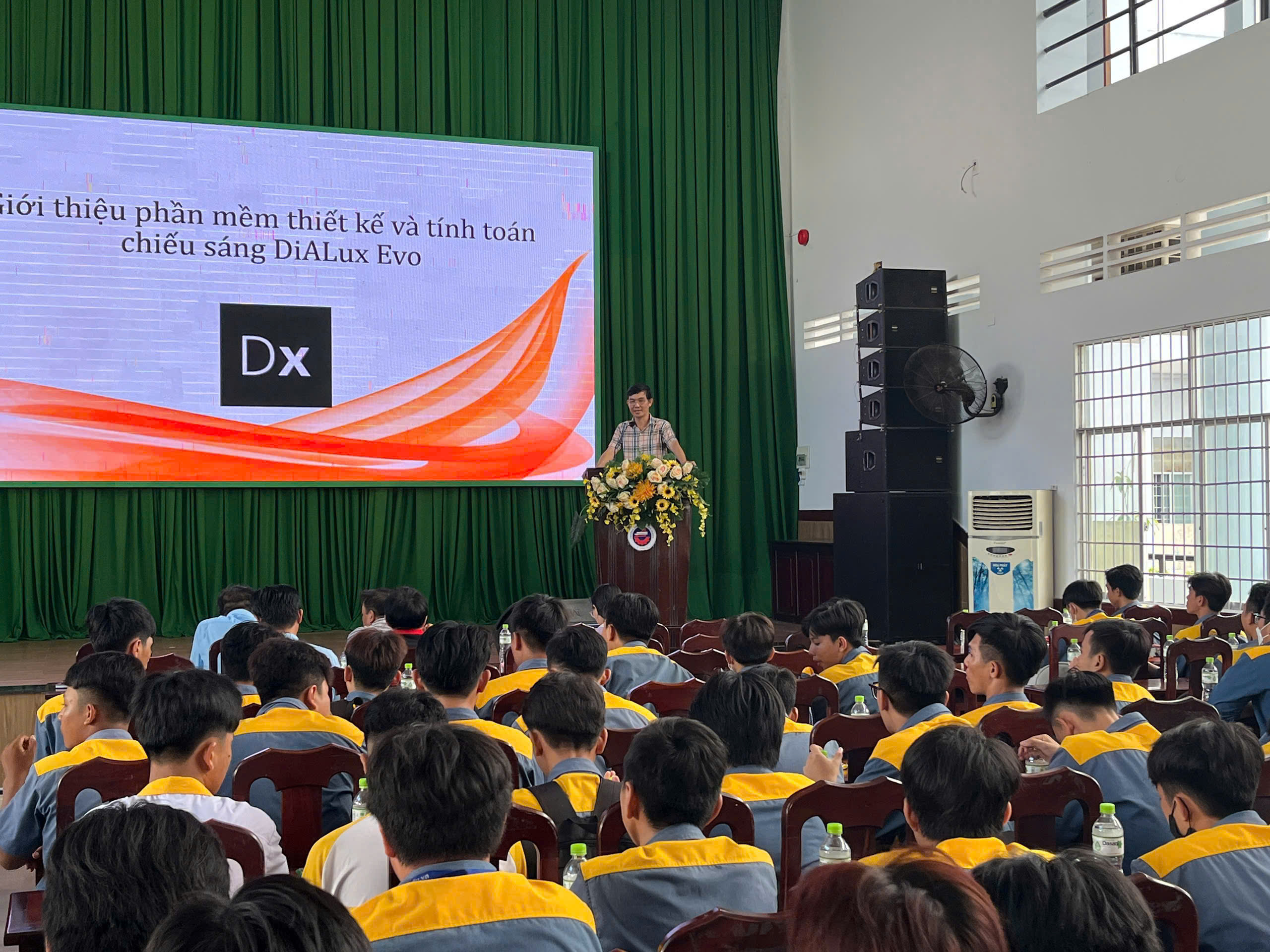 Ngoài việc tìm hiểu tổng quan về phần mềm DiaLUX Evo và vai trò của nó trong thiết kế hệ thống chiếu sáng, các sinh viên còn thực hành trực tiếp các bước thiết kế cơ bản và tham gia phần hỏi – đáp cực kỳ sôi nổi về ứng dụng này. Chắc chắn đây chính là cơ hội quý báu giúp các bạn rèn luyện thêm kỹ năng nghề nghiệp, kỹ năng thuyết trình, tổ chức và làm việc nhóm, sẵn sàng bước vào môi trường làm việc chuyên nghiệp trong tương lai.