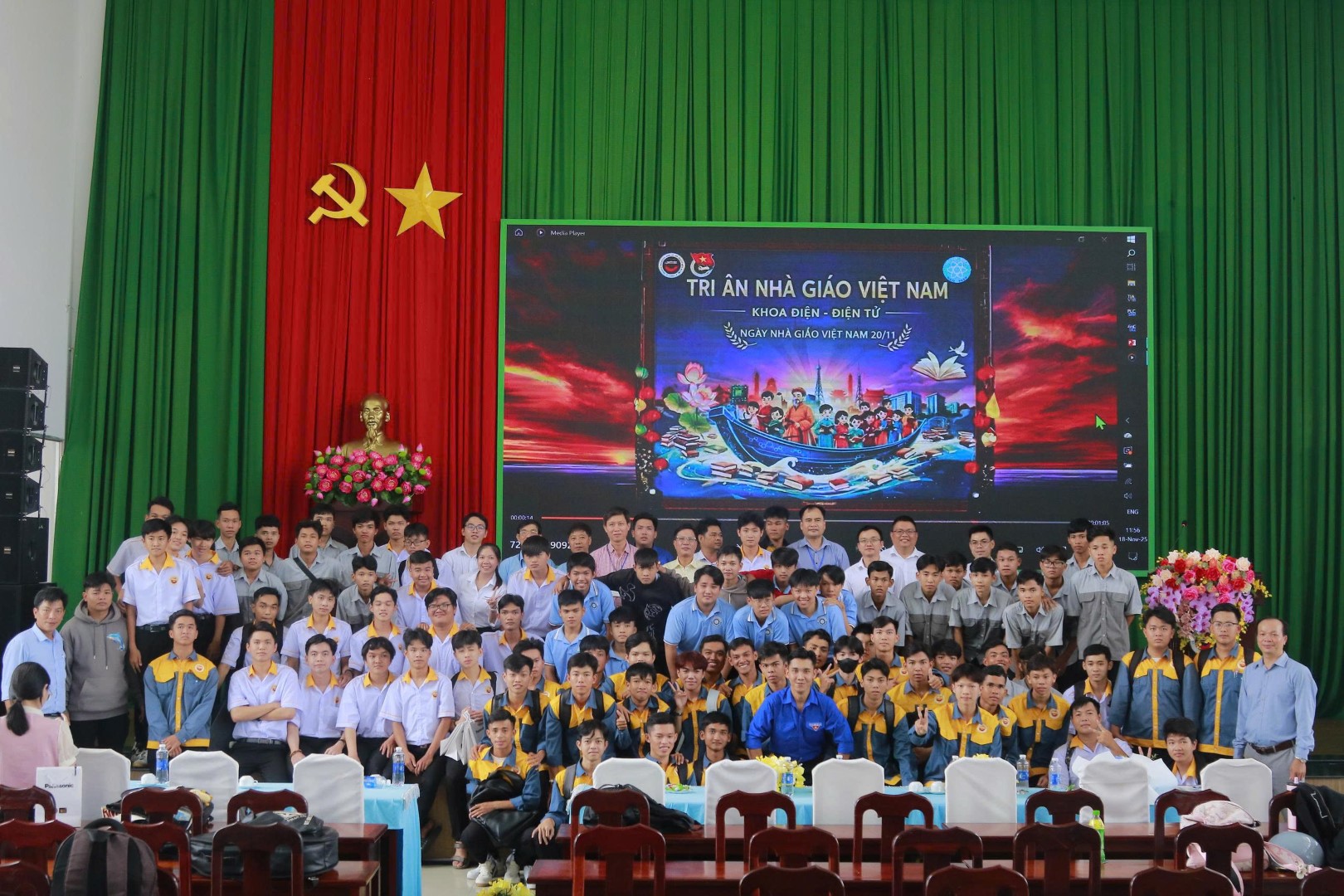 Nhằm hướng đến kỷ niệm Ngày Nhà giáo Việt Nam 20/11 và tạo dịp để sinh viên bày tỏ lòng biết ơn đối với quý thầy cô, ngày 18/11/2025, Đoàn – Hội Sinh viên khoa Điện – Điện tử đã trang trọng tổ chức Buổi họp mặt Tri ân Nhà giáo với sự tham dự của hơn 400 sinh viên, giảng viên trong khoa cùng đại diện doanh nghiệp đối tác.