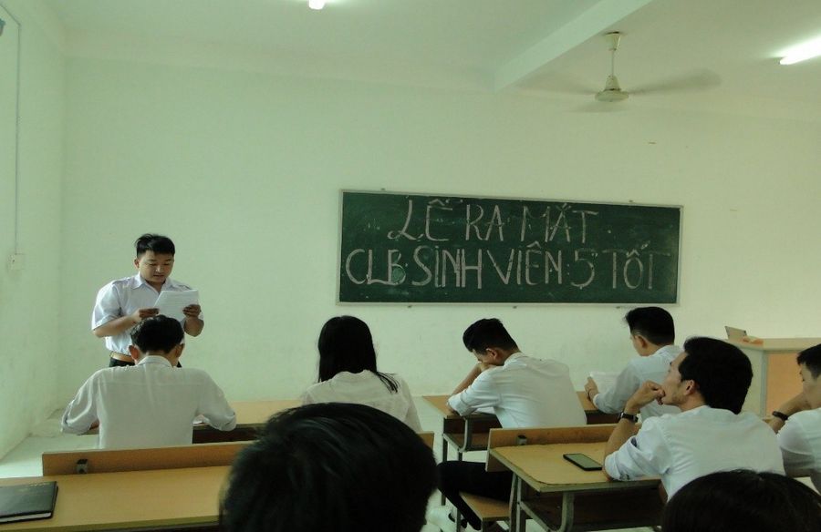 Vào lúc 17h00 ngày 05/05/2019, được sự phân công của đồng chí Nguyễn Đông Hồ - Chủ tịch Hội sinh viên trường cho đồng chí Võ Minh Luân – P.Chủ tịch Hội sinh viên chịu trách nhiệm thành lập Câu lạc bộ sinh viên 5 tốt cấp trường. Theo thông báo chung về việc triệu tập các bạn đã và đang mong muốn phấn đấu danh hiệu sinh viên 5 tốt, tại phòng 6GĐ khoa Du Lịch, với sự tham gia của hơn 20 bạn sinh viên buổi lễ ra mắt câu lạc bộ được đồng chí Luân thông qua quyết định thành lập CLB SV5T và thông qua nguyên tắc và mục tiêu hoạt động CLB, đồng thời hướng dẫn các bạn đã và đang muốn nhận danh hiệu sinh viên 5 tốt cần phấn đấu, rèn luyện những gì? Còn những thiếu chưa đạt được, từ đó phối hợp với Hội sinh viên đề ra những giải pháp cụ thể, nhằm tăng tỉ lệ sinh viên 5 tốt của trường. Cuối buổi ra mắt, Câu lạc bộ sinh viên 5 tốt được thành lập thành công tốt đẹp và BCH Hội sinh viên trường đã lựa chọn ra 04 đồng chí tiêu biểu giữ các chức danh chủ chốt của CLB: