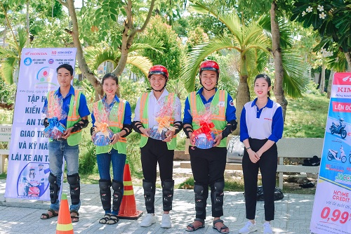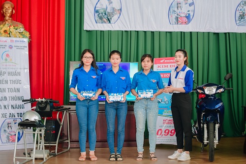 Tại buổi tập huấn, các bạn sinh viên đã được các nhân viên của công ty Honda Kim Điệp cung cấp các kiến thức về an toàn giao thông, các yếu tố ảnh hưởng đến điều khiển xe và các kỹ năng lái xe an toàn. Ngoài ra, các bạn còn được hướng dẫn đội mũ bảo hiểm đúng cách, cách xử lý các tình huống bất ngờ khi điều khiển phương tiện tham gia giao thông trên đường qua máy RT, thực hành các kỹ thuật lái xe cơ bản như: Kỹ thuật cua vòng, kỹ thuật phanh, các tư thế khi lái xe ở các loại địa hình và kỹ năng thăng bằng trên ván hẹp… Bên cạnh đó, Honda Kim Điệp cũng tiến hành kiểm tra kiến thức an toàn giao thông cùng những kỹ thuật lái xe cơ bản, đồng thời trao giải cho các bạn xuất sắc nhất trong phần thi lý thuyết và thực hành.