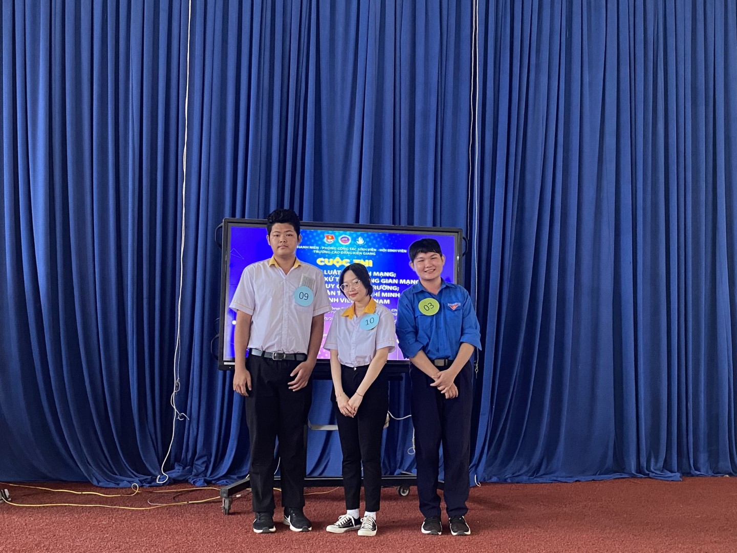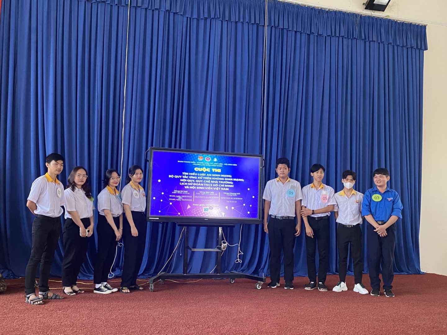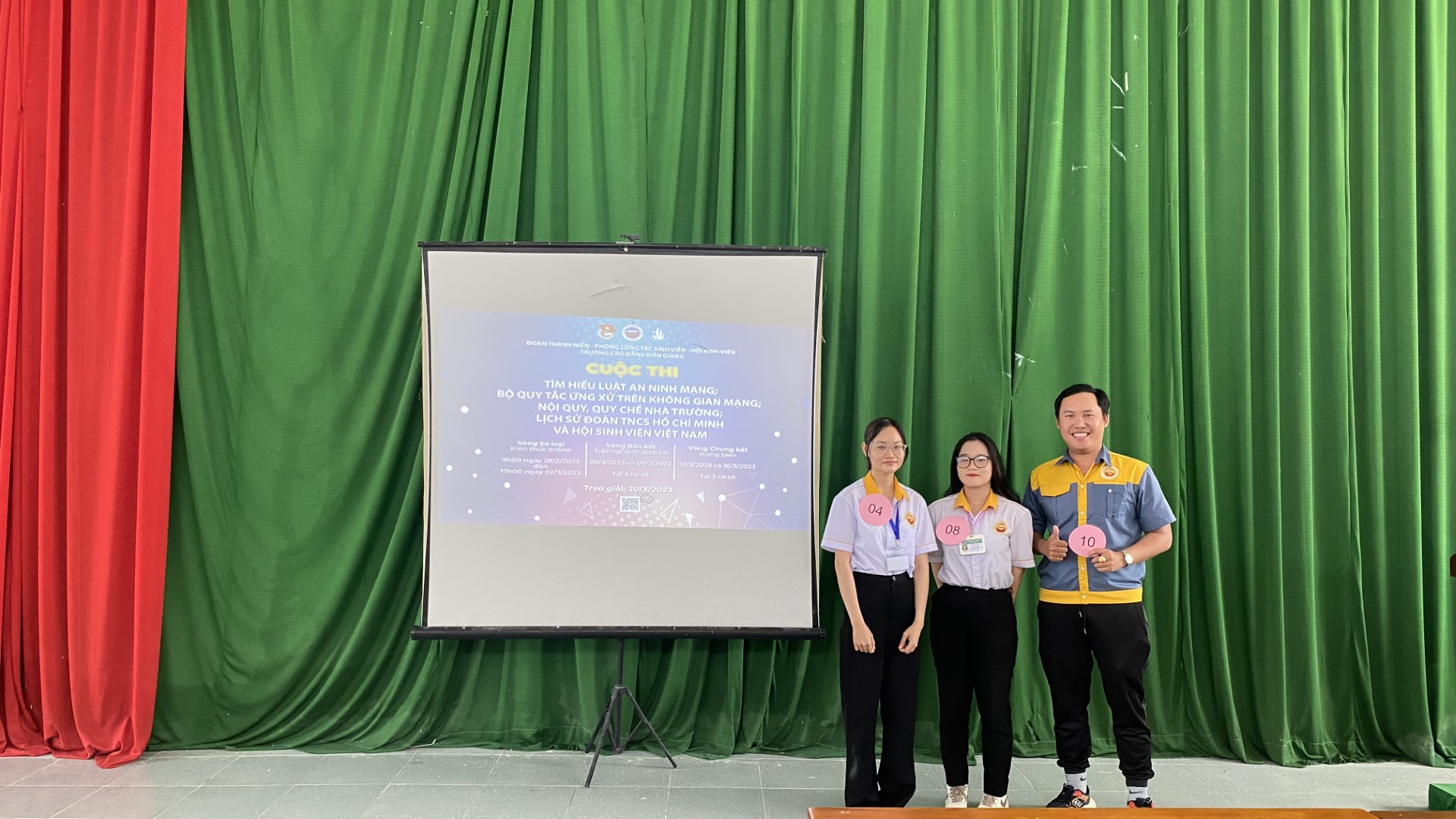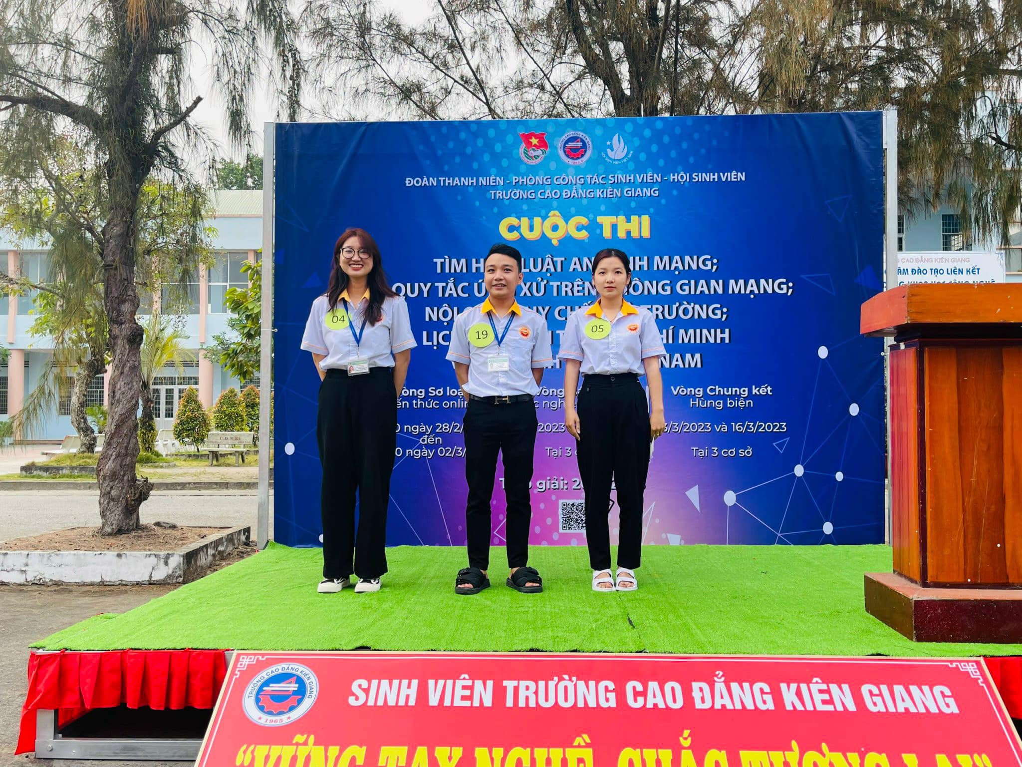 Từ ngày 6/3 đến 9/3/2023, vòng Bán kết cuộc thi Tìm hiểu về luật An ninh mạng, bộ quy tắc ứng xử trên không gian mạng; nội quy, quy chế nhà trường; lịch sử Đoàn thanh niên cộng sản Hồ Chí Minh và Hội sinh viên Việt Nam đã được tổ chức tại cơ sở Mạc Cửu, cơ sở Chu Văn An và Trung tâm Giáo dục thường xuyên với sự tham gia dự thi của 31 thí sinh có kết quả xuất sắc nhất tại vòng sơ loại và sự cổ vũ nhiệt tình từ quý Thầy, Cô và hơn 2000 học sinh, sinh viên trường Cao đẳng Kiên Giang.