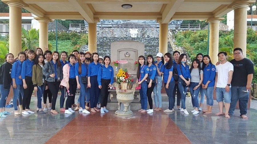 Sinh viên chụp ảnh lưu niệm tại Lăng Mạc Cửu – Thị xã Hà Tiên