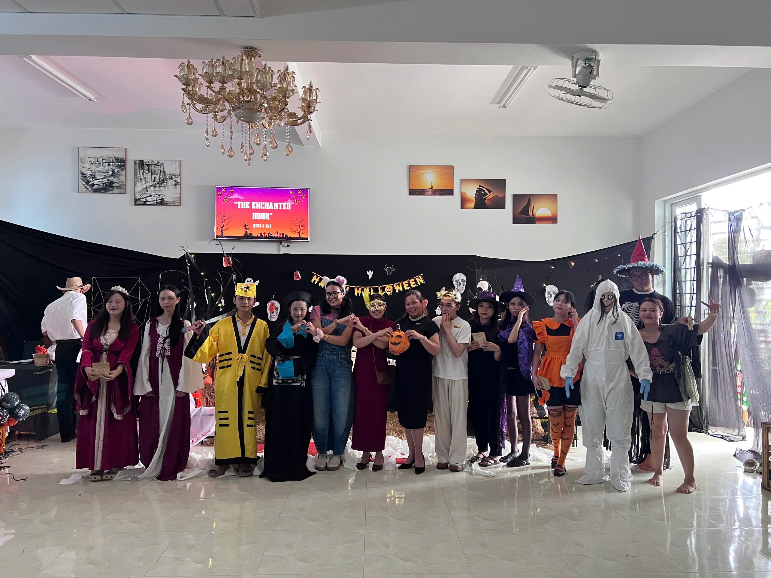 Halloween không chỉ là một sự kiện vui chơi mà còn là cơ hội để các bạn trẻ thỏa sức tưởng tượng, thể hiện phong cách độc đáo nhất. Với chủ đề “The Enchanted Hour – 90 phút trong Đêm Phép Thuật”, sinh viên Quản trị khách sạn 2 CĐ K17 đã biến hoá không gian lớp học thành một thế giới nhiệm màu, nơi mỗi nhân vật bước ra đều mang theo câu chuyện, cá tính riêng biệt. Chương trình diễn ra vào ngày 28/10/2025, với sự đồng hành của cô Jodi Ann P L Fallas – Trợ giảng tiếng Anh đến từ chương trình Fulbright. Sự xuất hiện của cô đã góp phần tạo nên bầu không khí vui tươi, hào hứng ngay từ những phút đầu tiên, khiến sinh viên càng thêm háo hức.