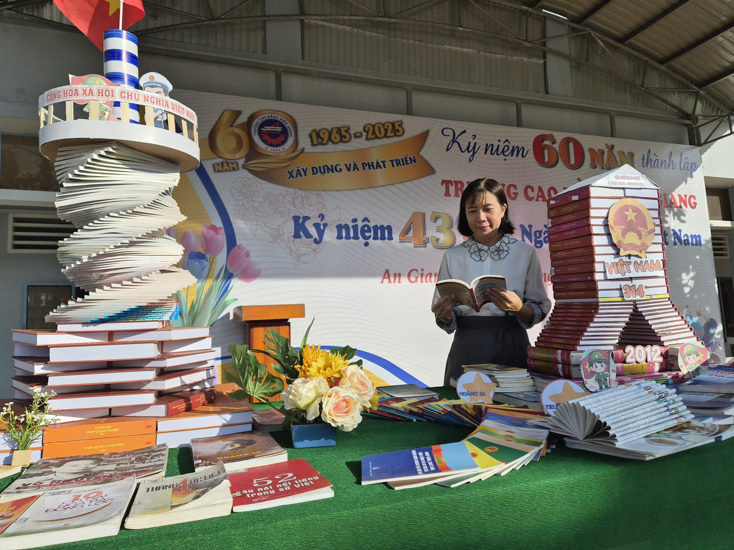 Bên cạnh đó, Thư viện nhà trường cũng tổ chức không gian phục vụ văn hóa đọc, đồng thời trưng bày các mô hình xếp sách nghệ thuật với biểu tượng Ngọn hải đăng, thể hiện cho ánh sáng, niềm tin và định hướng, cùng mô hình Cột mốc 314 biên giới Việt Nam – Campuchia, thể hiện tinh thần bảo vệ chủ quyền, gìn giữ hòa bình và tình hữu nghị giữa các quốc gia. Các mô hình được thực hiện công phu, sáng tạo, thu hút các thầy cô giáo và sinh viên tham quan, tìm hiểu cũng như khám phá thêm nhiều đầu sách giá trị. Đây không chỉ là dịp để lan tỏa văn hóa đọc, mà còn góp phần giáo dục lòng yêu nước, ý thức trách nhiệm của thế hệ trẻ đối với lịch sử và tương lai đất nước.