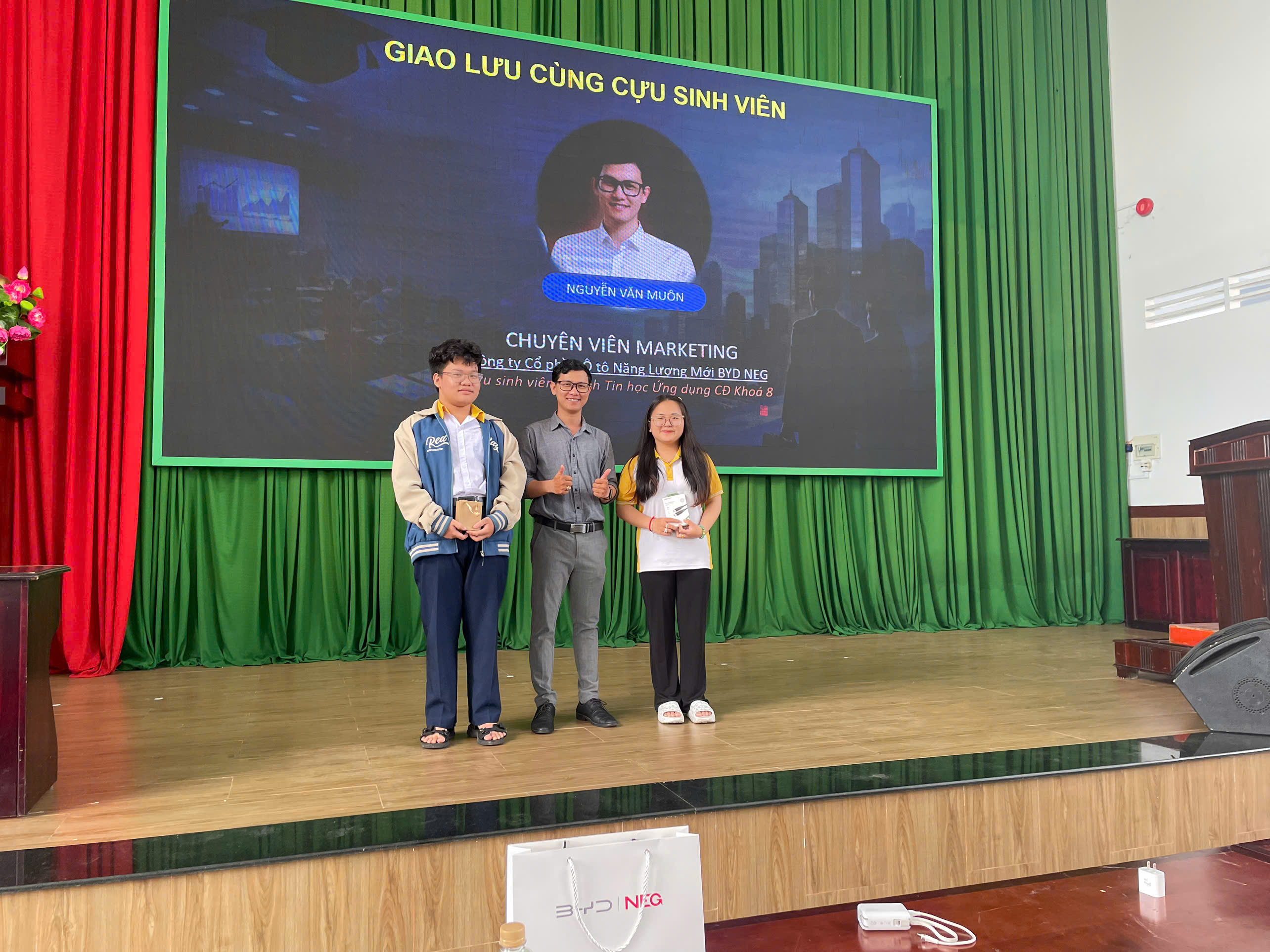 Bên cạnh đó, chương trình còn có sự góp mặt của anh Nguyễn Văn Muôn, cựu sinh viên ngành Tin học ứng dụng, Cao đẳng K8, hiện là Chuyên viên Marketing Ô tô Năng Lượng Mới BYD NEG, với nhiều năm kinh nghiệm trong lĩnh vực đào tạo văn hóa doanh nghiệp và marketing.Thông qua các chủ đề như kỹ năng giao tiếp với doanh nghiệp, kỹ năng làm việc hiệu quả và thái độ nghề nghiệp, anh đã chỉ ra những sai lầm phổ biến của sinh viên mới ra trường cũng như để cao thái độ nghề nghiệp và tinh thần chủ động học hỏi.