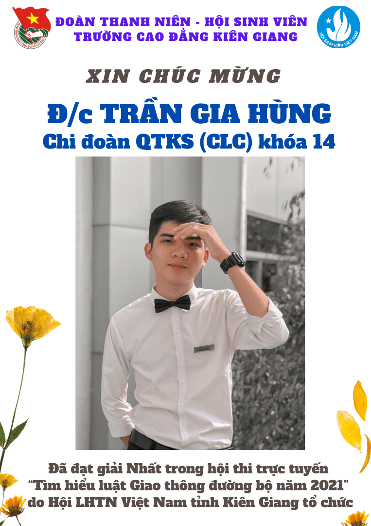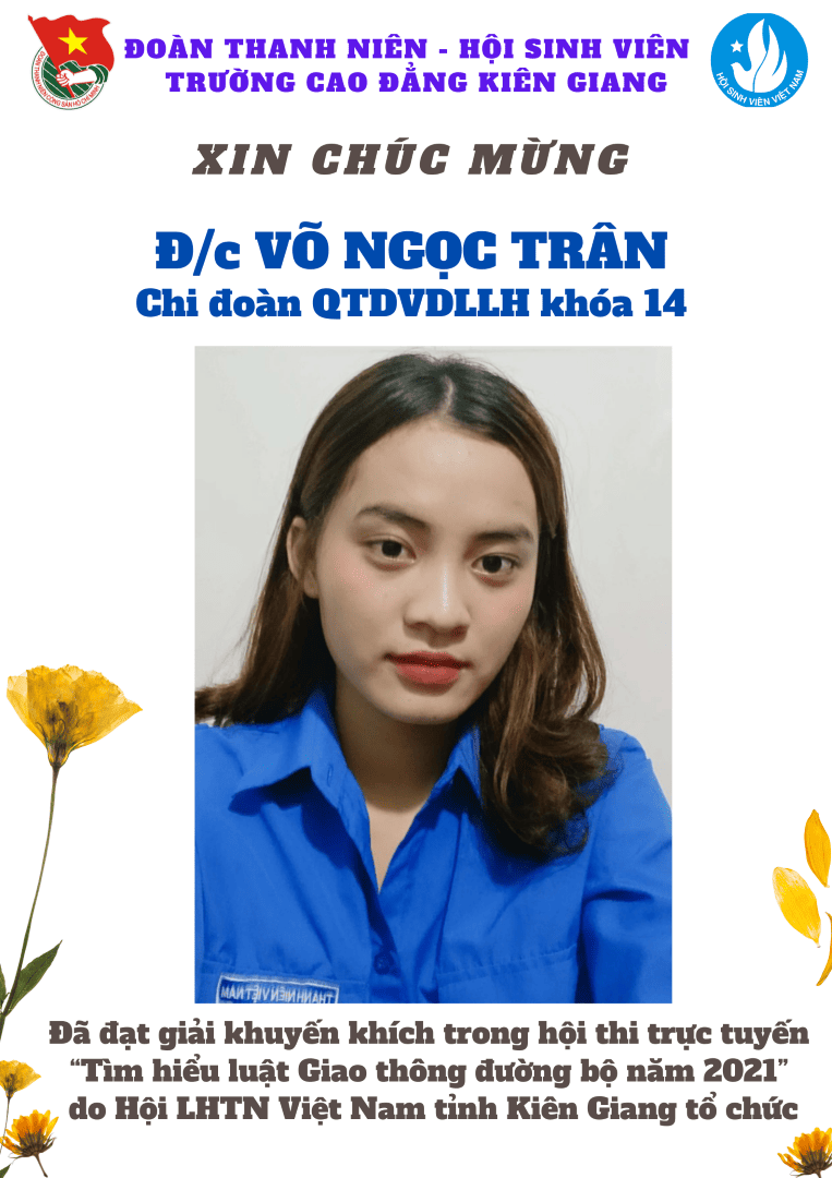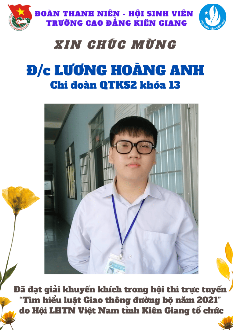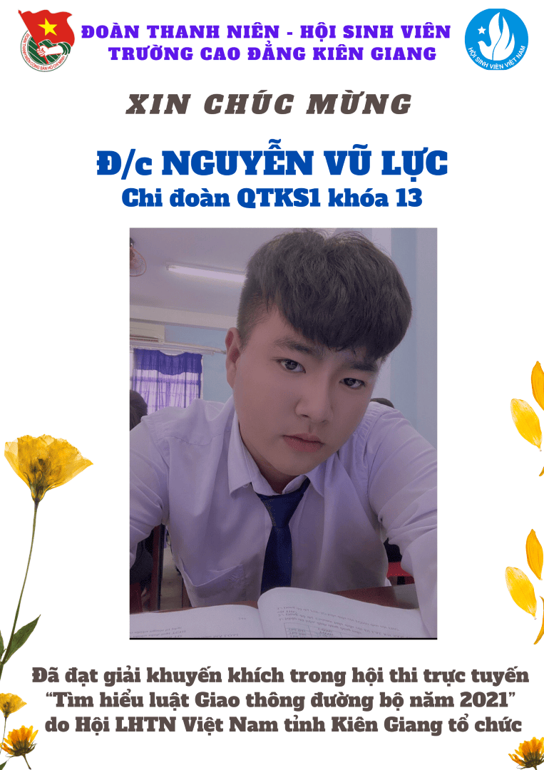 Đoàn trường, Hội sinh viên trường rất trân trọng và tuyên dương các tập thể, cá nhân đã tích cực vận động cũng như tham gia các cuộc thi, qua đó đạt nhiều giải thưởng cao, mang về thành tích cũng như vinh dự cho tập thể sinh viên trường. Tiêu biểu như: 100% giải thưởng của cuộc thi “Tìm hiểu luật Giao thông đường bộ năm 2021” do Ủy ban Hội liên hiệp thanh niên tỉnh Kiên Giang tổ chức đã thuộc về các bạn Đoàn viên, Hội viên của trường với 03 giải Nhất, 03 giải Nhì, 03 giải Ba, 09 giải khuyến khích (tổng giá trị giải thưởng lên đến 13.500.000 đồng); 01 giải khuyến khích trong cuộc thi “Tìm hiểu cuộc bầu cử Đại biểu Quốc hội & Hội đồng Nhân dân các cấp nhiệm kỳ 2021 – 2026 do tỉnh Đoàn Kiên Giang tổ chức.