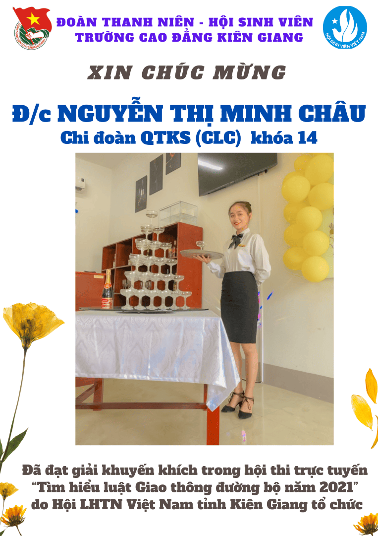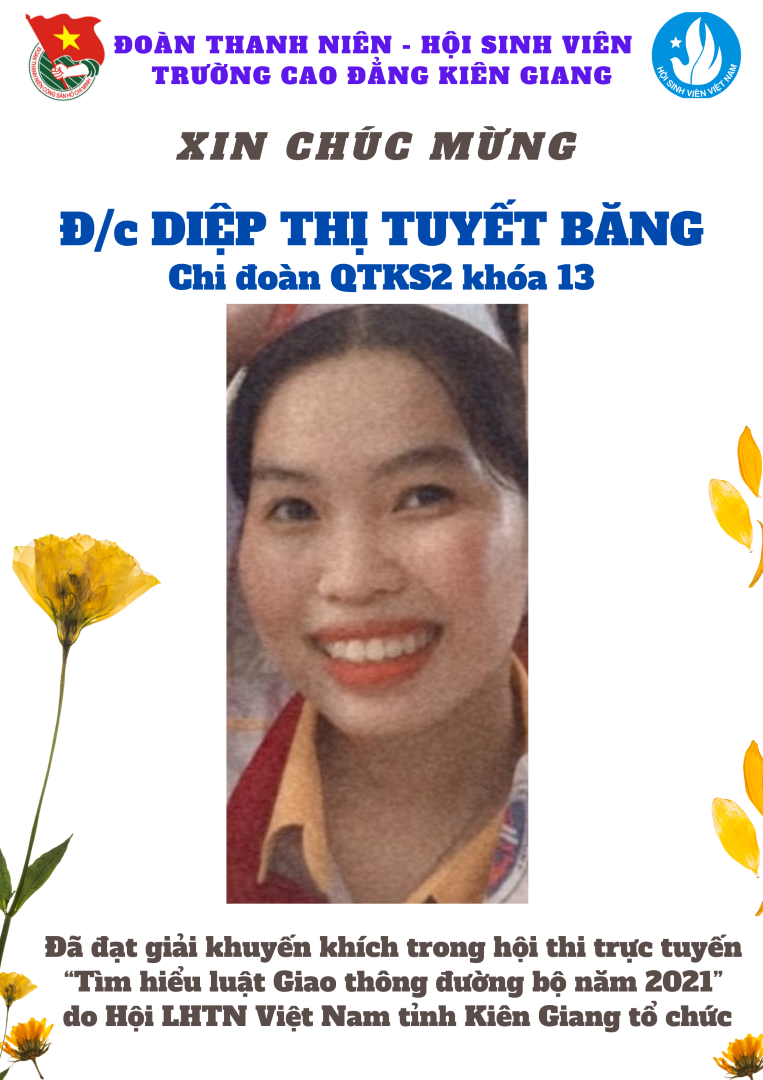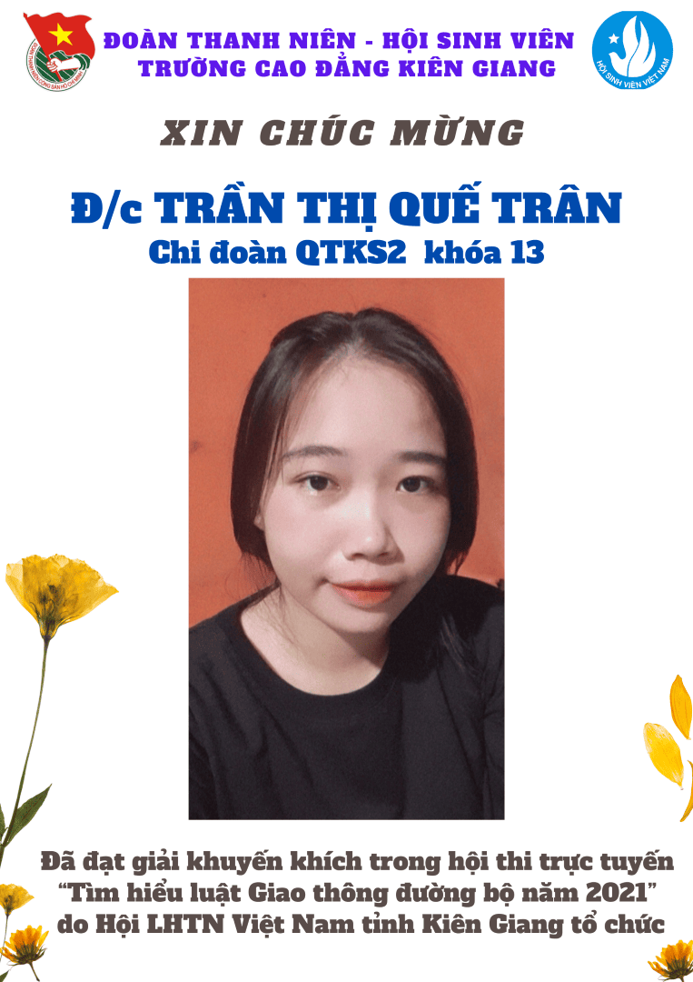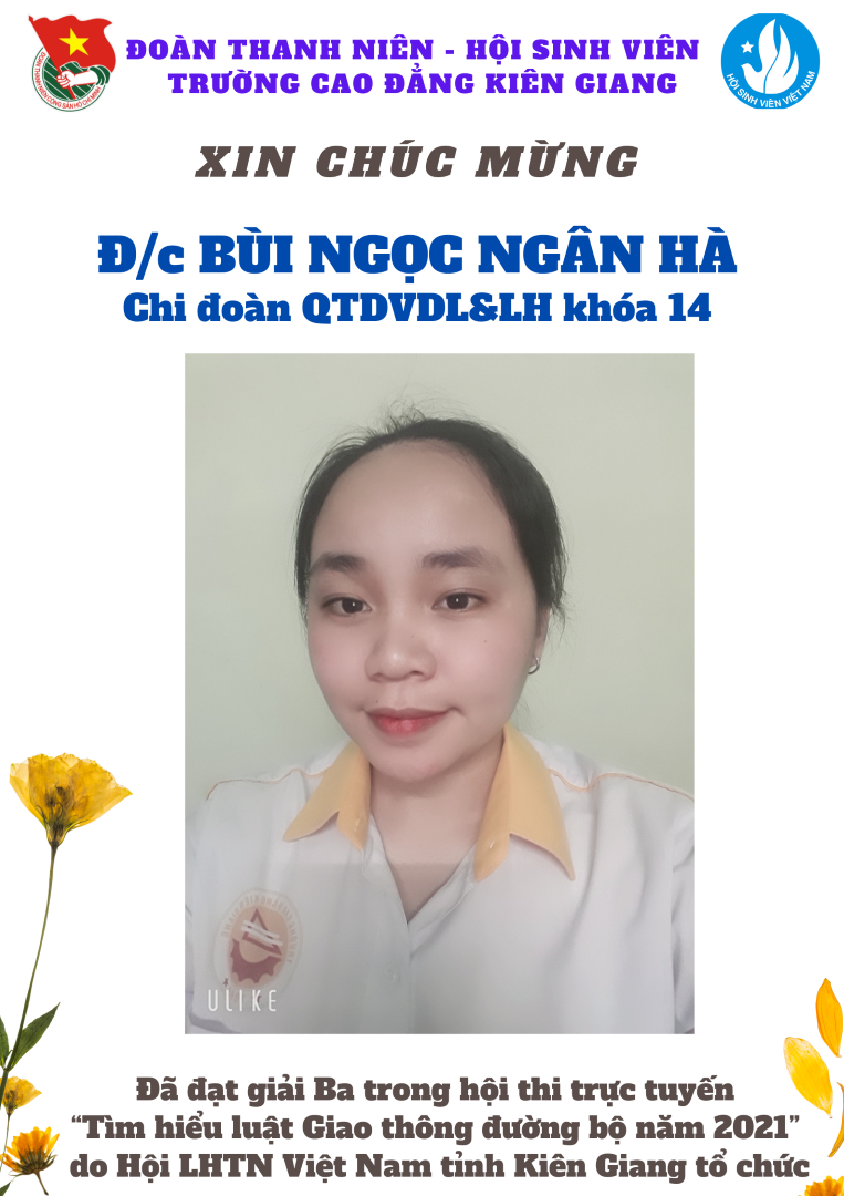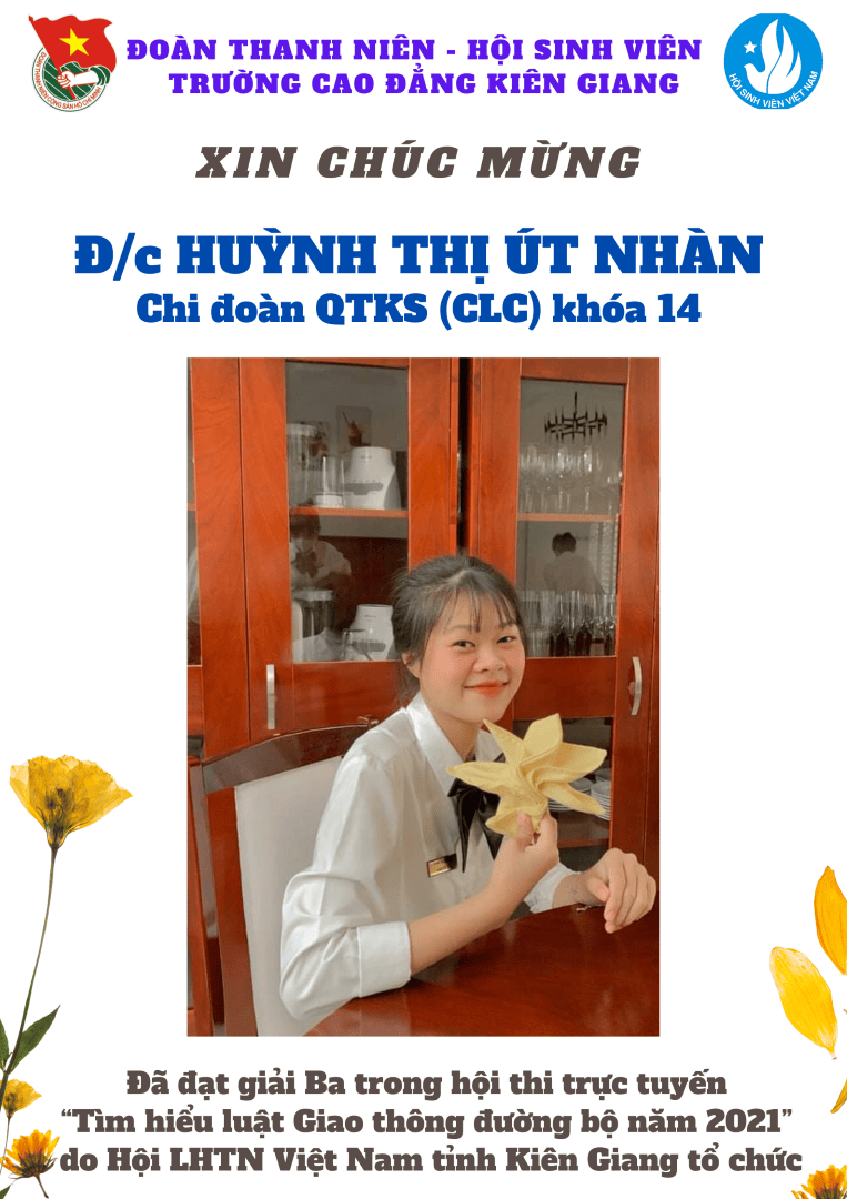 Đoàn trường, Hội sinh viên trường rất trân trọng và tuyên dương các tập thể, cá nhân đã tích cực vận động cũng như tham gia các cuộc thi, qua đó đạt nhiều giải thưởng cao, mang về thành tích cũng như vinh dự cho tập thể sinh viên trường. Tiêu biểu như: 100% giải thưởng của cuộc thi “Tìm hiểu luật Giao thông đường bộ năm 2021” do Ủy ban Hội liên hiệp thanh niên tỉnh Kiên Giang tổ chức đã thuộc về các bạn Đoàn viên, Hội viên của trường với 03 giải Nhất, 03 giải Nhì, 03 giải Ba, 09 giải khuyến khích (tổng giá trị giải thưởng lên đến 13.500.000 đồng); 01 giải khuyến khích trong cuộc thi “Tìm hiểu cuộc bầu cử Đại biểu Quốc hội & Hội đồng Nhân dân các cấp nhiệm kỳ 2021 – 2026 do tỉnh Đoàn Kiên Giang tổ chức.
