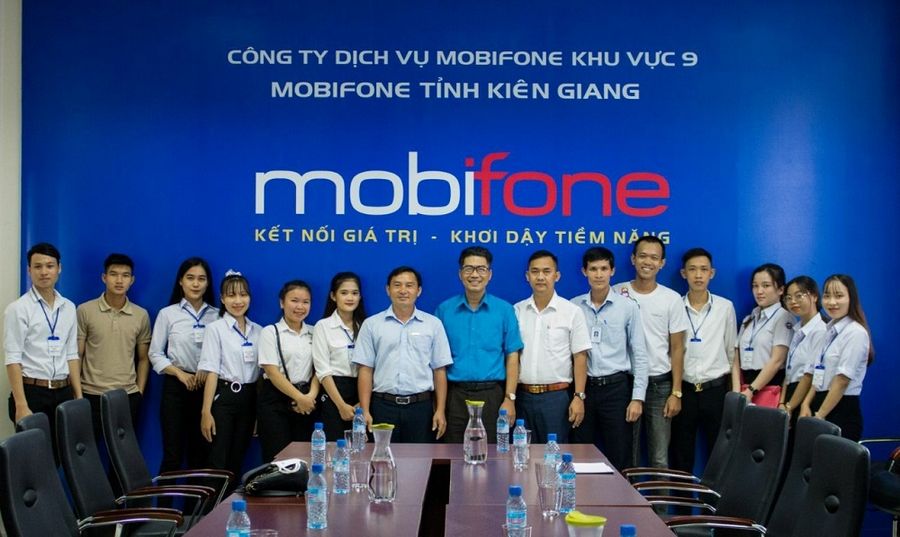 Buổi tiếp nhận sinh viên thực tập giữa lãnh đạo khoa Kinh tế - Luật và lãnh đạo Công ty Mobifone Kiên Giang