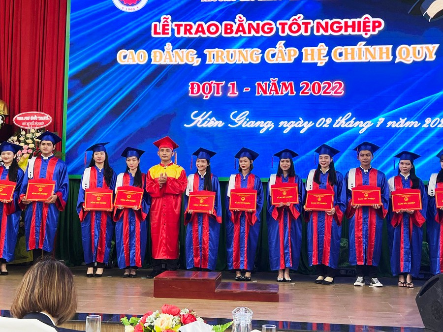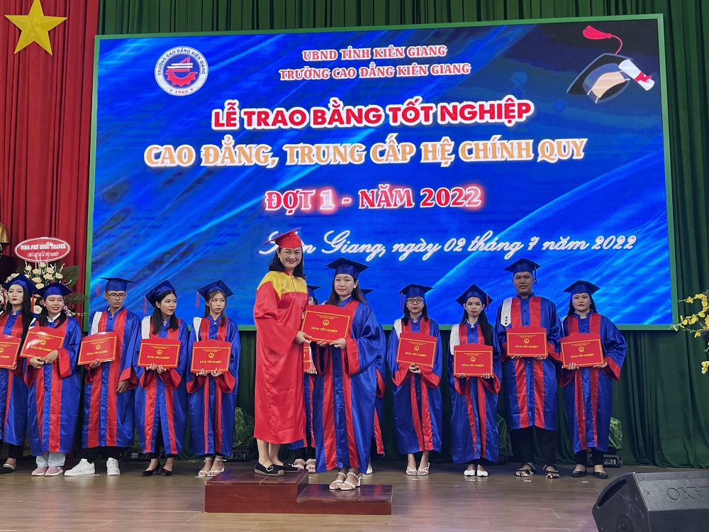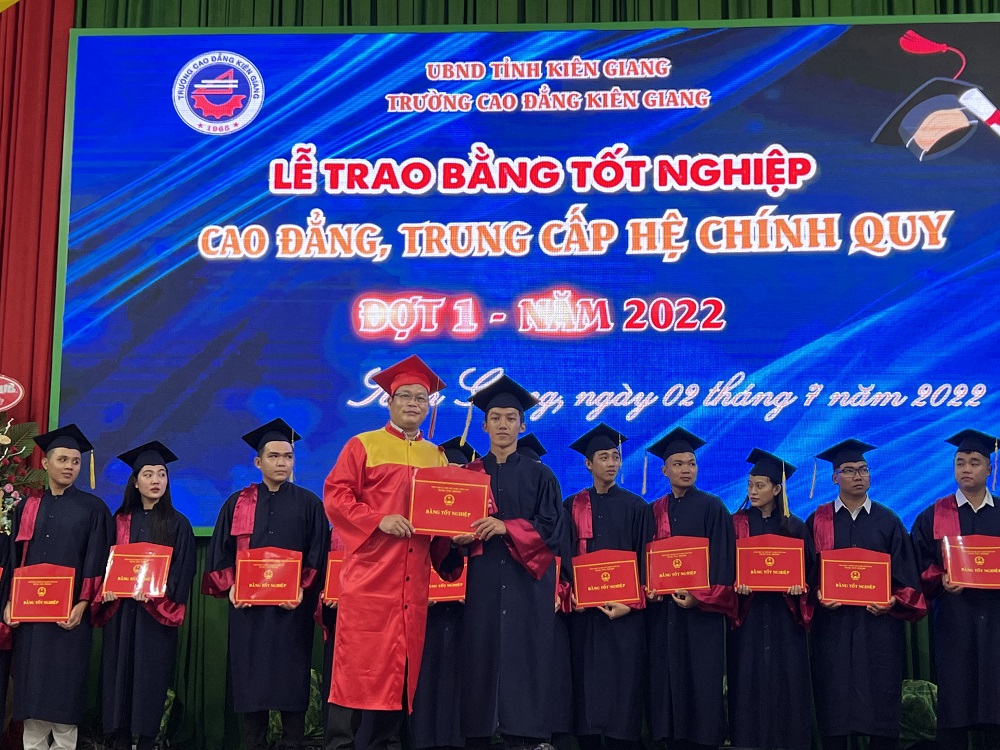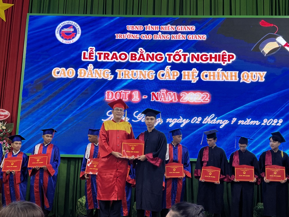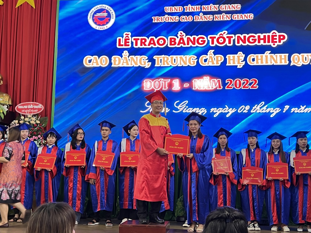 Sáng 02/7/2022, Trường Cao đẳng Kiên Giang tổ chức Lễ trao bằng tốt nghiệp Cao đẳng, Trung cấp và ngày hội Tư vấn giới thiệu việc làm cho 459 học sinh, sinh viên thuộc các khoa Du lịch, Kinh tế - Luật, Cơ khí sửa chữa, Xây dựng – Giao thông và Công nghệ thông tin tại cơ sở 425 Mạc Cửu, TP. Rạch Giá.