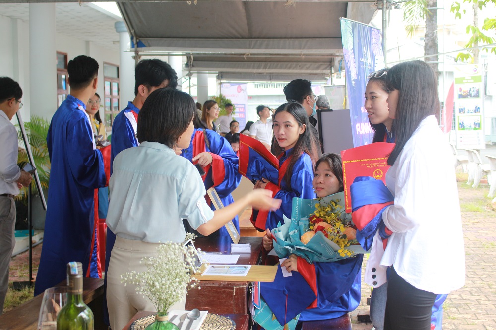 Lễ Tốt nghiệp đã được diễn ra đầy hân hoan, hoành tráng và phấn khích vì đồng thời với sự có mặt của 13 doanh nghiệp là các doanh nghiệp, tập đoàn lớn tham gia tuyển dụng vị trí việc làm cho sinh viên vừa mới ra trường tại Ngày hội Tư vấn giới thiệu việc làm và tuyển dụng.