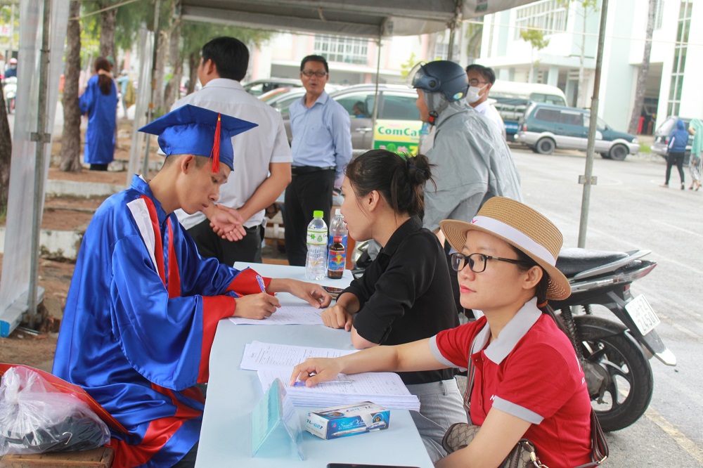 Trong sáng cùng ngày, ngay sau Lễ tốt nghiệp, Trường Cao đẳng Kiên Giang cũng đã tổ chức Ngày hội Tư vấn giới thiệu việc làm và tuyển dụng cho 459 học sinh, sinh viên thuộc các khoa Du lịch, Kinh tế - Luật, Cơ khí sửa chữa, Xây dựng – Giao thông và Công nghệ thông tin. Ngày hội có sự tham gia của 13 doanh nghiệp trong và ngoài tỉnh, đặc biệt là các doanh nghiệp lớn tại Phú Quốc như Sun Group, Movenpick, Vinpearl Phú Quốc, Vina Phú Quốc Travel, InterContinental Phú Quốc Long Beach Resort, Regent Resort Phú Quốc, Sailing Club Signature Resort Phú Quốc… Các Tân Cử nhân, Kỹ sư thực hành sẽ có nhiều cơ hội lựa chọn vị trí việc làm, từ đó chọn được công việc phù hợp với năng lực, sở trường và chuyên môn đã được đào tạo.
