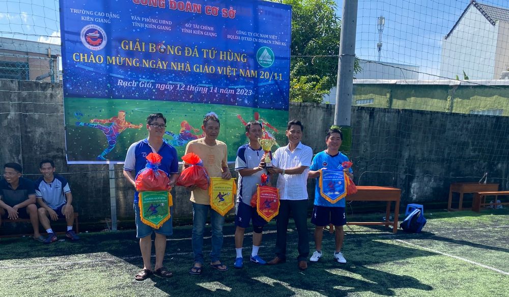 Thiết thực chào mừng kỷ niệm 41 năm ngày Nhà giáo Việt Nam (20/11/1982 -20/11/2023) và nhằm tạo khí thế hăng say, phấn khởi trong đoàn viên công đoàn, thúc đẩy phong trào thể dục thể thao của các đơn vị, thể hiện tinh thần “làm việc tốt, vui chơi khỏe” của đoàn viên công đoàn, qua đó tạo sân chơi lành mạnh,tăng cường tinh thần đoàn kết, giao lưu, học hỏi giữa các đơn vị, góp phần phát triển hoạt động phong trào trong công đoàn viên chức của tỉnh Kiên Giang, sáng ngày 12/11, Công đoàn cơ sở trường Cao đẳng Kiên Giang đã tổ chức buổi giao lưu bóng đá nam mini cùng các cơ quan, doanh nghiệp trong tỉnh.