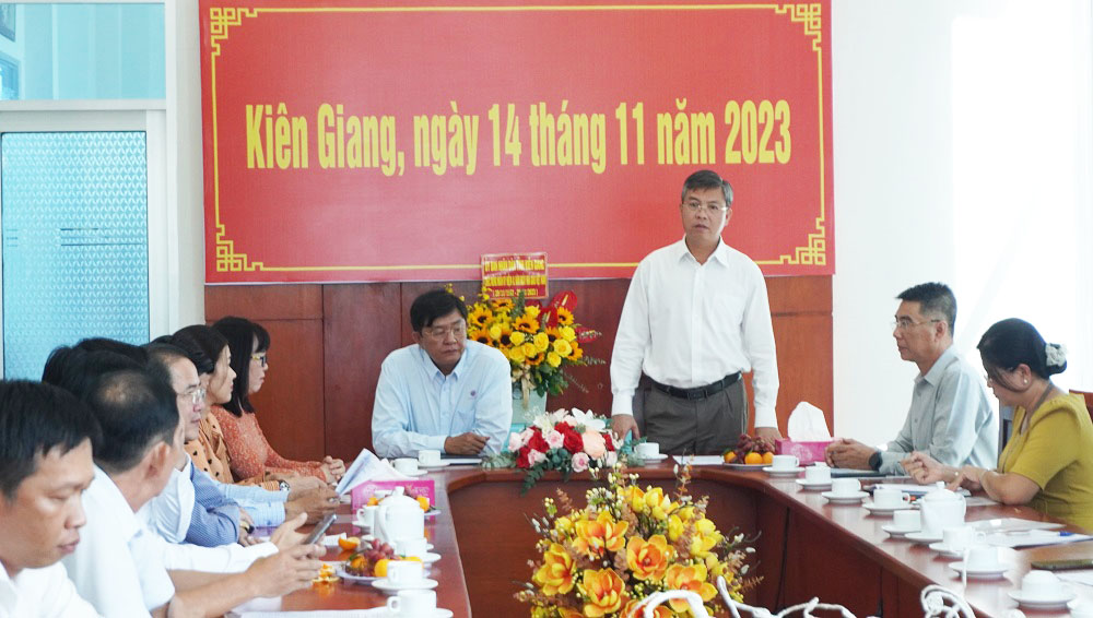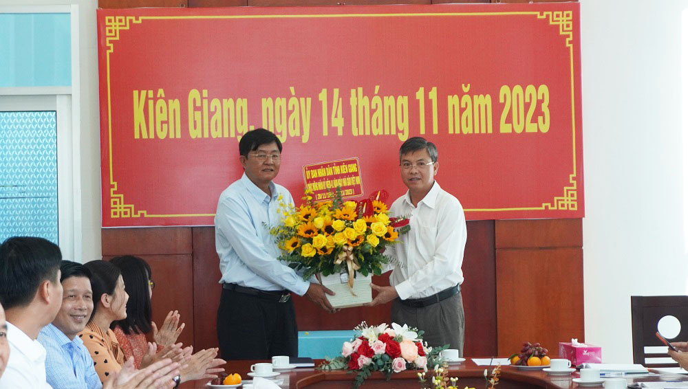 Nhân kỷ niệm 41 năm Ngày Nhà giáo Việt Nam (20/11/1982-20/11/2023), sáng 14/11, đồng chí Nguyễn Lưu Trung, Phó Chủ tịch UBND tỉnh cùng các đồng chí lãnh đạo Sở Lao động - Thương binh và Xã hội, Sở Giáo dục và Đào tạo; Sở Tài chính; Sở Tài nguyên và Môi trường; lãnh đạo Công ty TNHH MTV Xổ số kiến thiết Kiên Giang đã đến thăm, tặng hoa chúc mừng các thầy, cô giáo tại Trường Cao đẳng Kiên Giang.