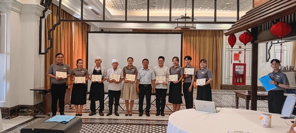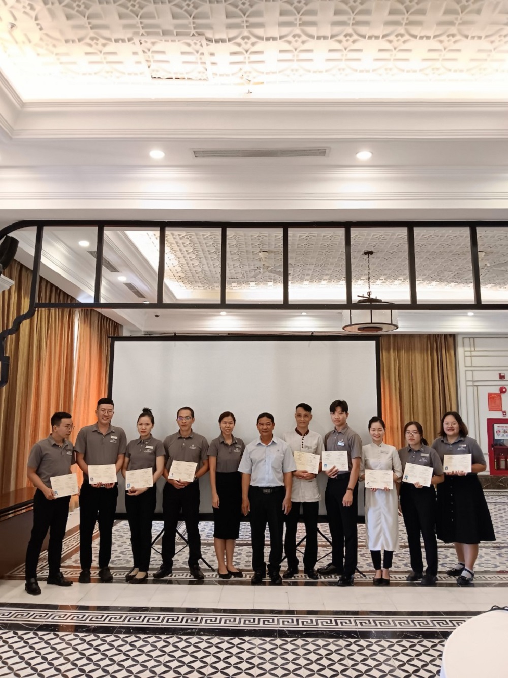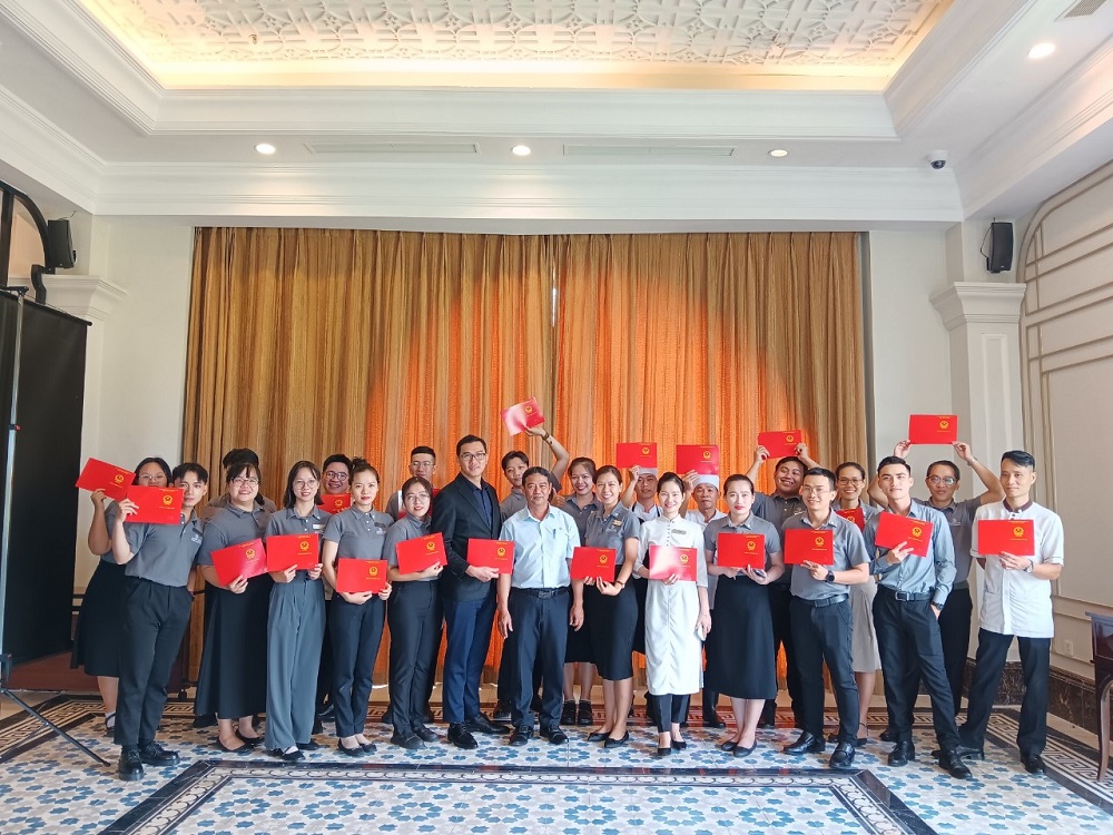Tiếp tục thực hiện Kế hoạch số 42/KH-UBND của Ủy ban nhân dân tỉnh Kiên Giang ngày 16/02/2023 về việc đào tạo và đào tạo lại cho lao động đang làm việc tại doanh nghiệp và cơ sở sản xuất kinh doanh trên địa bàn tỉnh Kiên Giang giai đoạn 2023-2025, Trường Cao đẳng Kiên Giang phối hợp Chi nhánh Kiên Giang - Công ty Cổ phần Vinpearll tổ chức khóa đào tạo cho người lao động làm việc tại Khách sạn Sheraton Phú Quốc Long Beach Resort từ 30/10/2023 đến 27/11/2023. Ngày 05/12/2023, Trường Cao đẳng Kiên Giang đã tổ chức tổng kết và trao chứng chỉ khóa học cho 114 học viên tốt nghiệp, có 99% học viên đánh giá tốt về công tác tổ chức đào tạo, điều kiện cơ sở vật chất phục vụ lớp học, chương trình - giáo trình đào tạo, chất lượng giảng dạy của đội ngũ giảng viên, đặc biệt là người học tự đánh giá tốt về nhận thức và kỹ năng nghề nghiệp của mình sau khi tham gia khóa đào tạo, đồng thời đề xuất Nhà trường mở thêm nhiều lớp nghiệp vụ cho doanh nghiệp trong thời gian tới.
