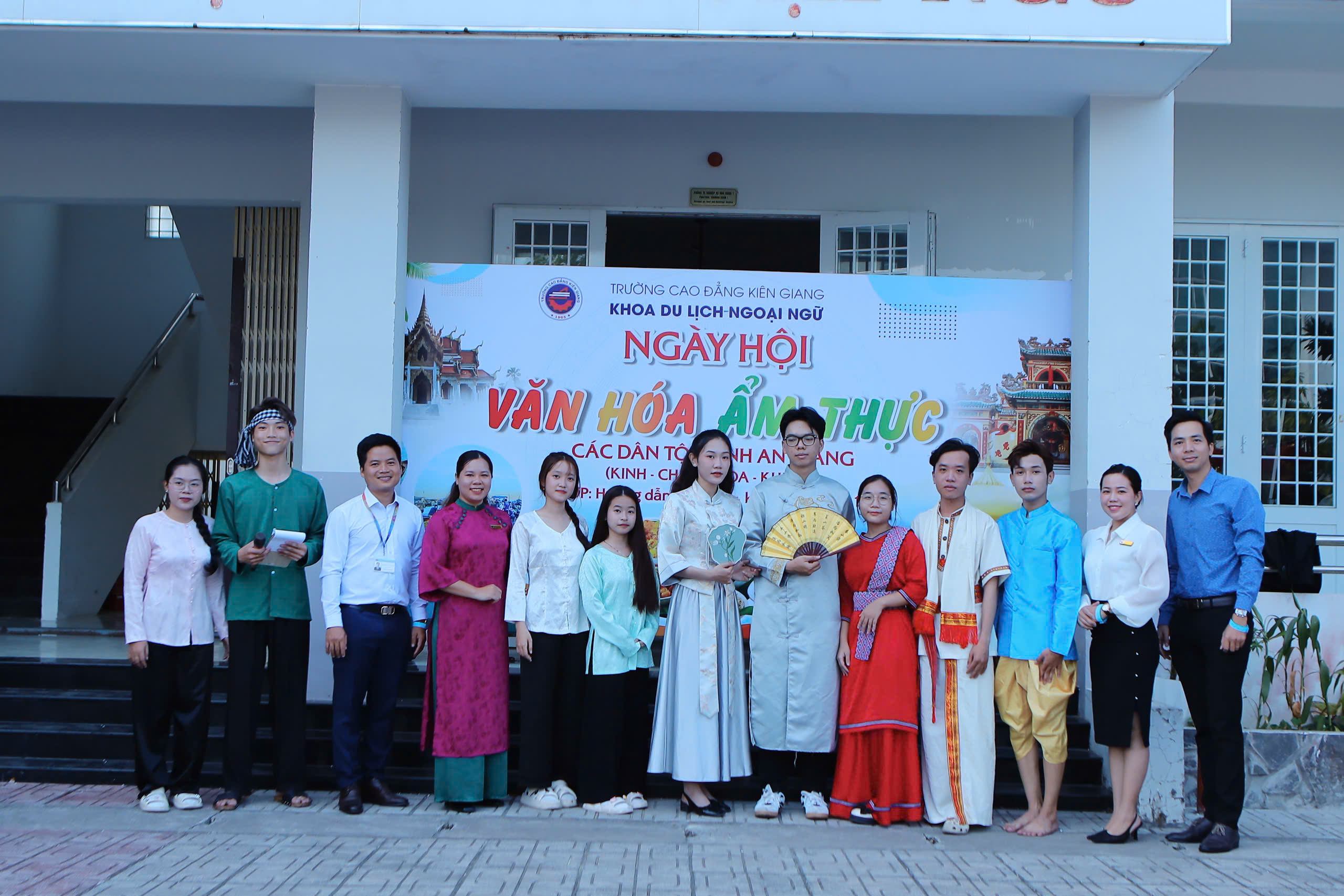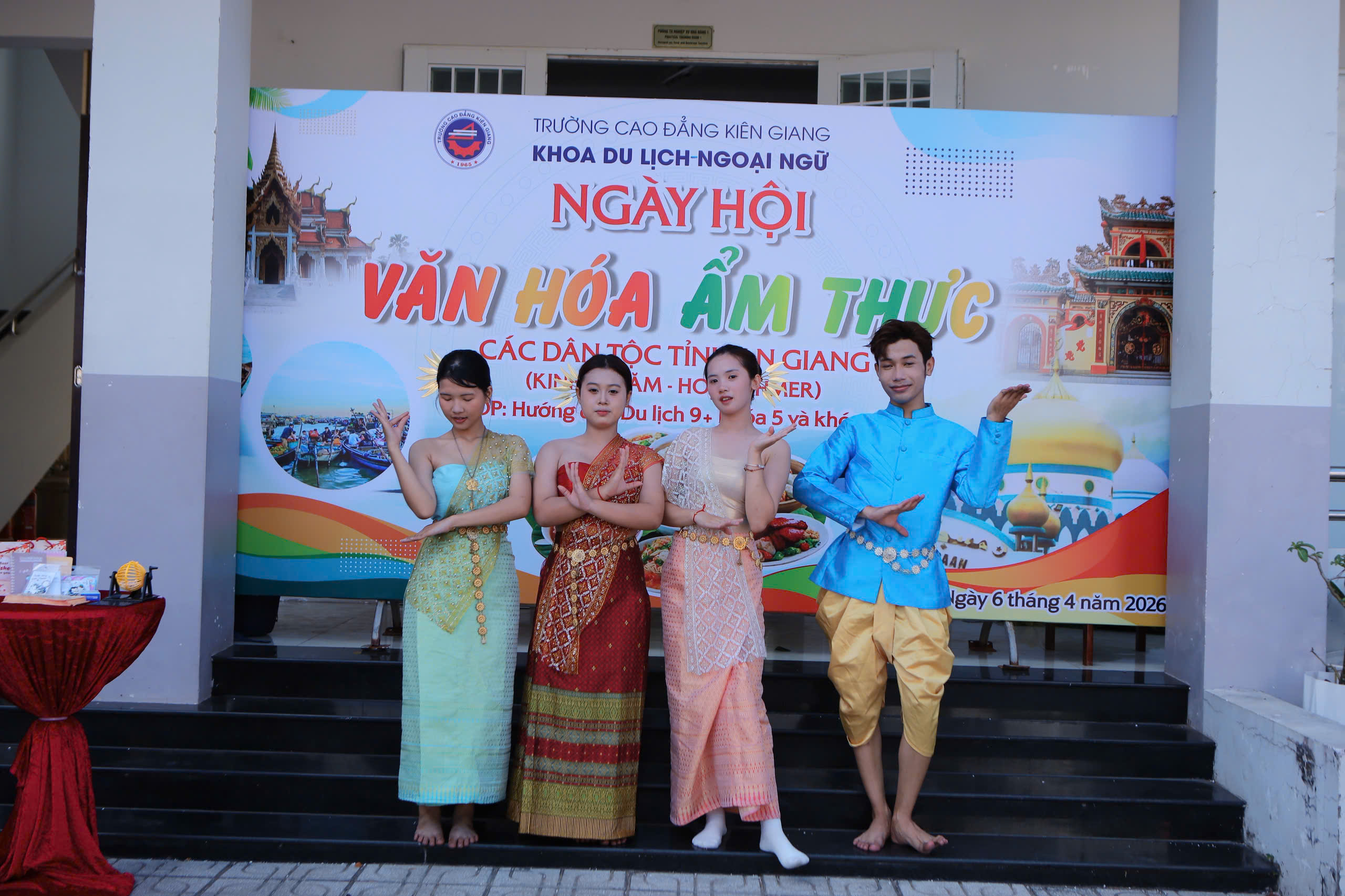 Vừa qua ngày 06/4/2026, toàn thể sinh viên lớp Hướng dẫn Du lịch 9+ K5 và CĐ K18, Khoa Du lịch – Ngoại ngữ, Trường Cao đẳng Kiên Giang đã tổ chức thành công chương trình “Ngày hội Văn hóa – Ẩm thực các dân tộc An Giang” với nhiều hoạt động sôi nổi và ý nghĩa. Đây là bài thi kết thúc môn Tổ chức sự kiện nằm trong khuôn khổ chương trình đào tạo ngành Hướng dẫn du lịch.