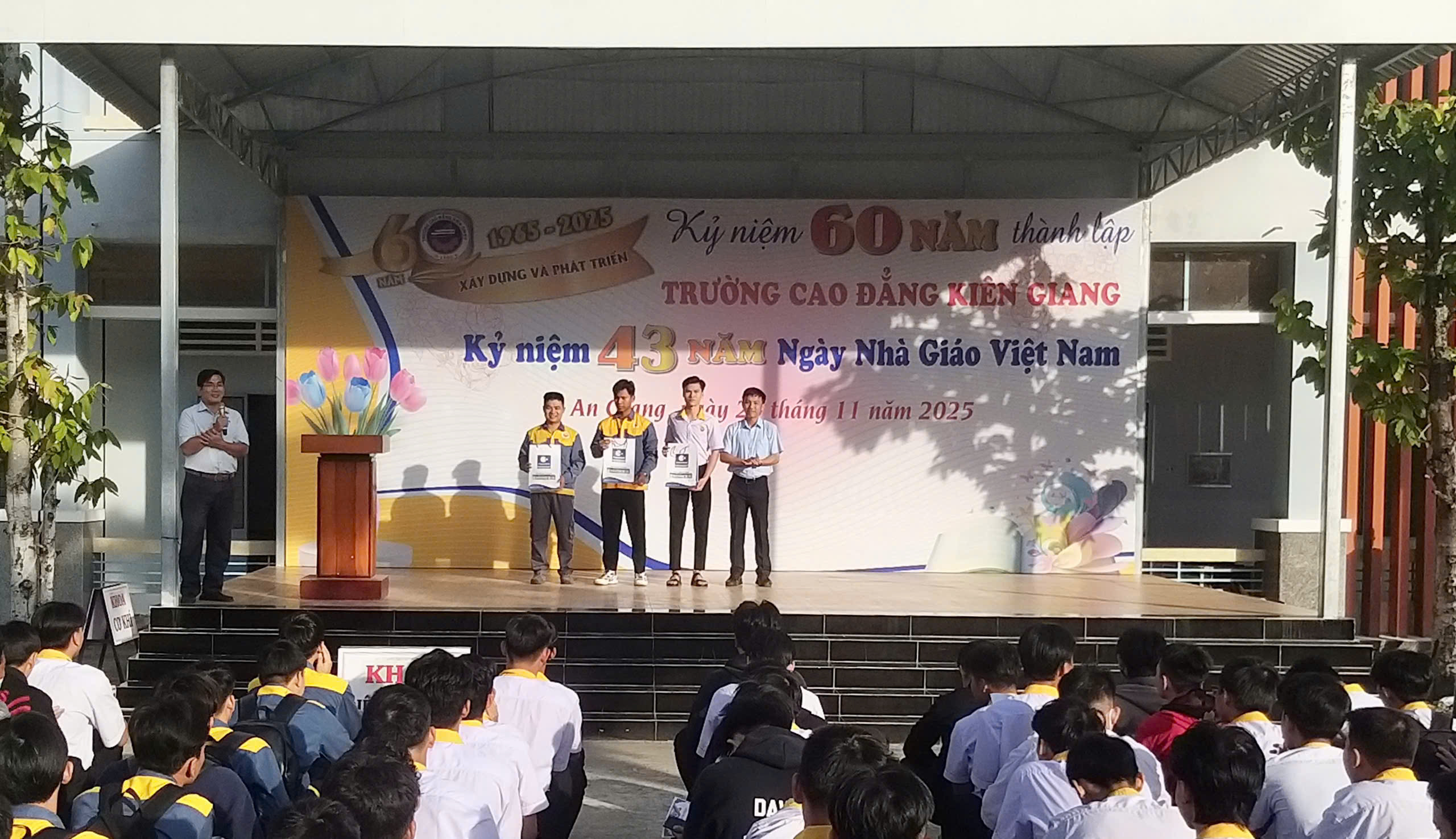 Sáng ngày 08/12/2025, Ban Tổ chức Hội thi Tay nghề Lắp đặt Điện lạnh dân dụng lần III – năm 2025 đã tổ chức trao Giấy chứng nhận cho 35 đội thi đã hoàn thành Vòng Sơ loại. Đây là những nỗ lực đáng ghi nhận của các bạn sinh viên Khoa Điện - Điện, Trường Cao đẳng Kiên Giang trong suốt quá trình ôn luyện và thi đấu.