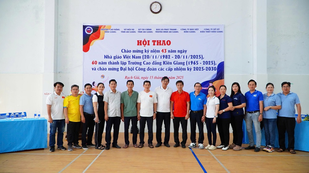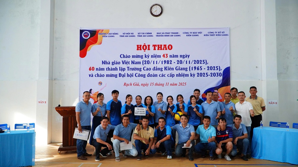 Sáng ngày 15/11/2025, Công đoàn cơ sở trường Cao đẳng Kiên Giang đã đăng cai tổ chức giao lưu thể thao giữa nhà trường và các đơn vị kết bạn chào mừng kỷ niệm 43 năm ngày Nhà giáo Việt Nam (20/11/1982–20/11/2025), Kỷ niệm 60 năm thành lập Trường Cao đẳng Kiên Giang (1965–2025) và hướng tới Đại hội Công đoàn các cấp nhiệm kỳ 2025–2030.