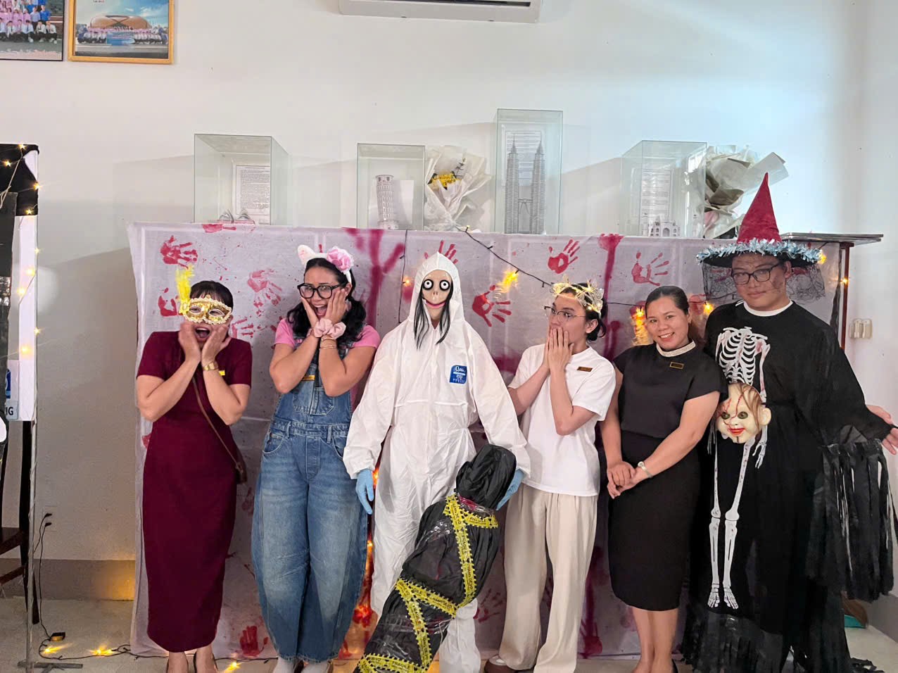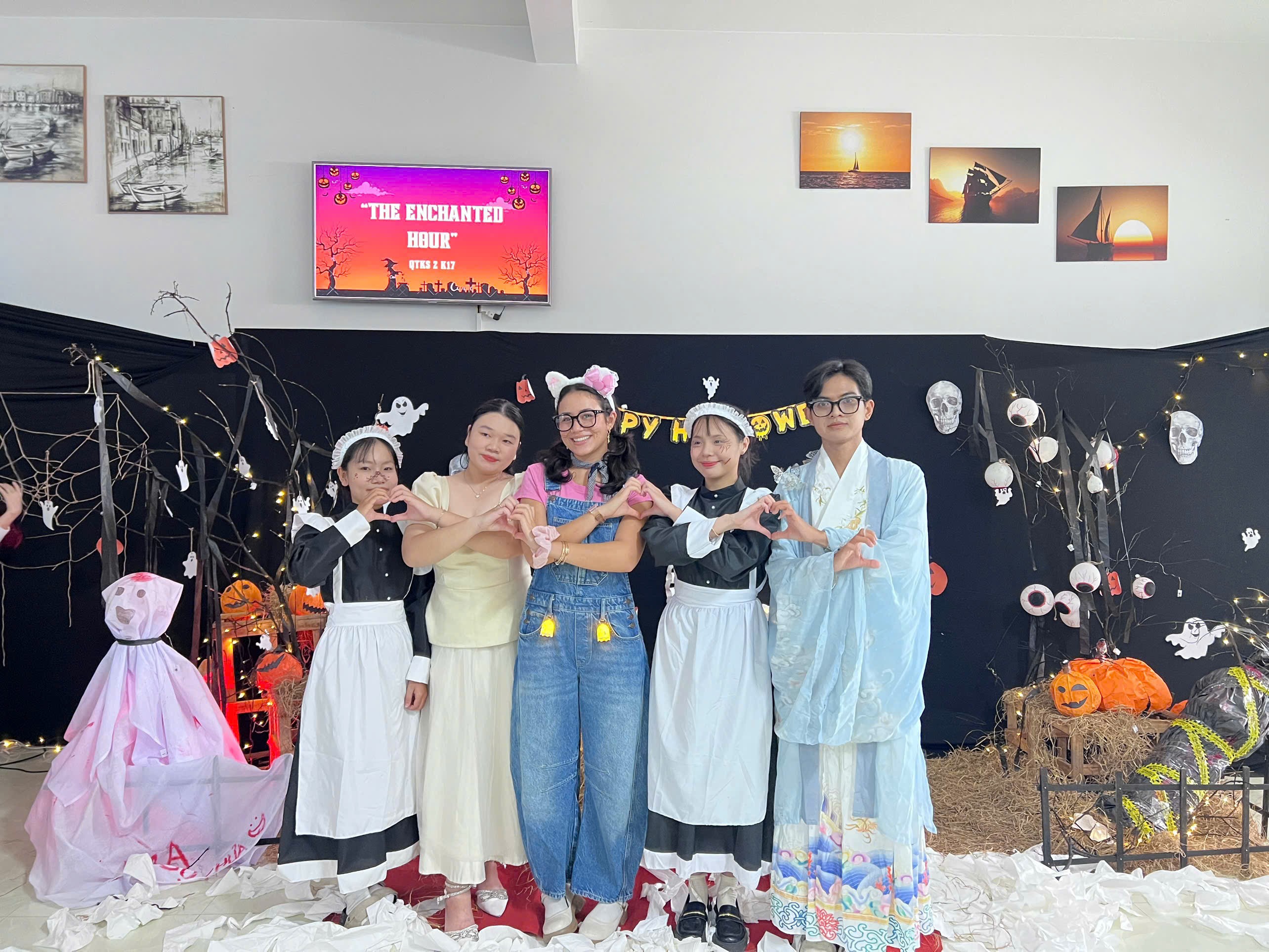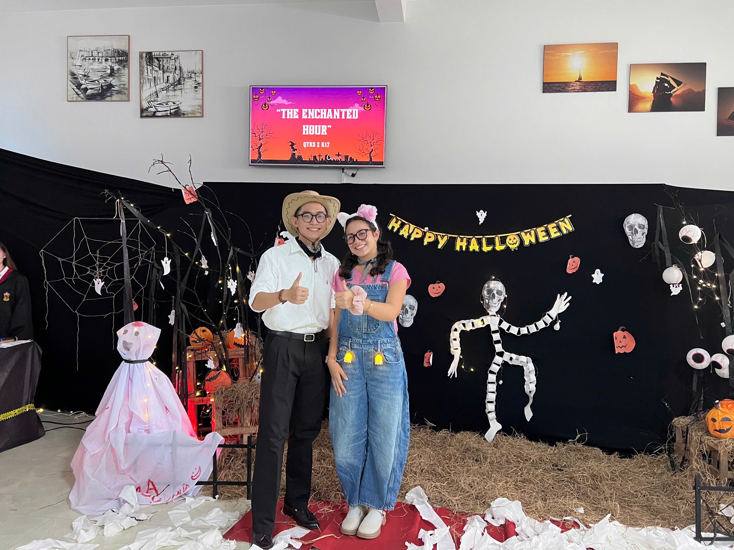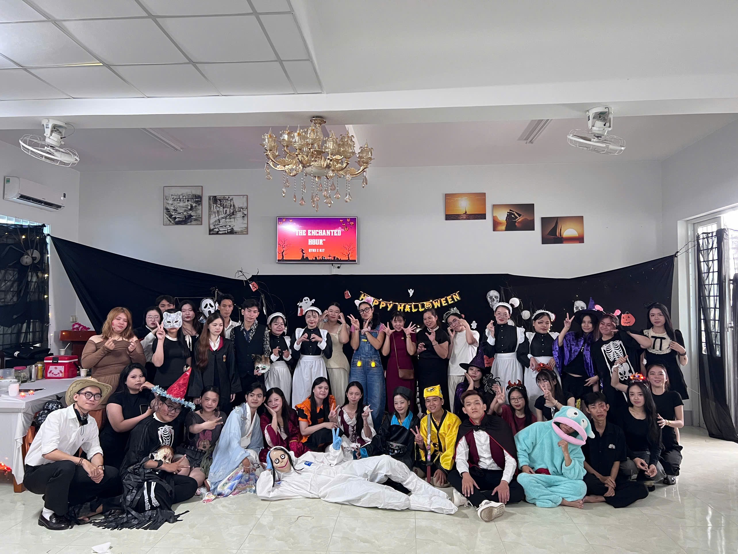 Halloween không chỉ là một sự kiện vui chơi mà còn là cơ hội để các bạn trẻ thỏa sức tưởng tượng, thể hiện phong cách độc đáo nhất. Với chủ đề “The Enchanted Hour – 90 phút trong Đêm Phép Thuật”, sinh viên Quản trị khách sạn 2 CĐ K17 đã biến hoá không gian lớp học thành một thế giới nhiệm màu, nơi mỗi nhân vật bước ra đều mang theo câu chuyện, cá tính riêng biệt. Chương trình diễn ra vào ngày 28/10/2025, với sự đồng hành của cô Jodi Ann P L Fallas – Trợ giảng tiếng Anh đến từ chương trình Fulbright. Sự xuất hiện của cô đã góp phần tạo nên bầu không khí vui tươi, hào hứng ngay từ những phút đầu tiên, khiến sinh viên càng thêm háo hức.