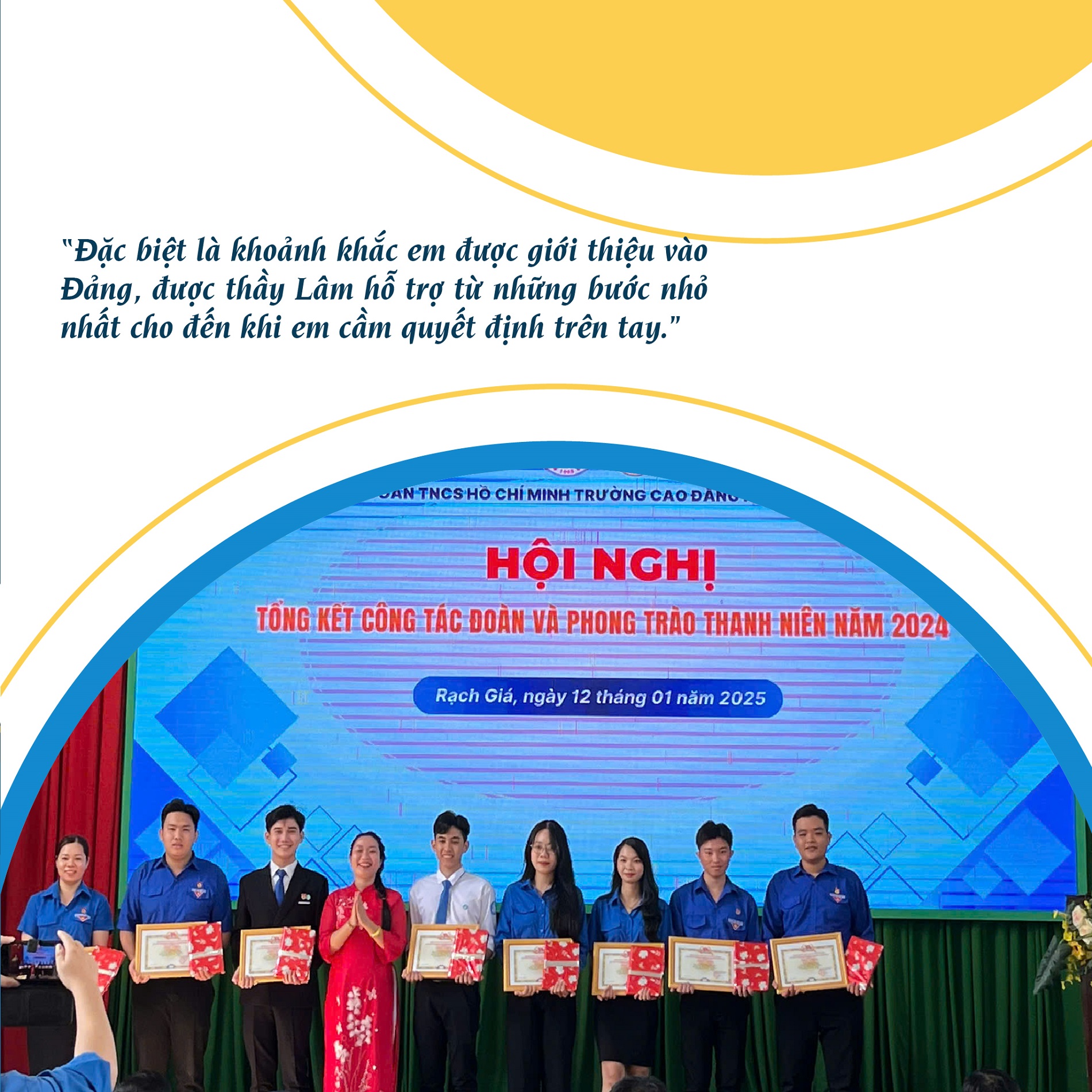 Khi được hỏi về kỷ niệm đáng nhớ nhất, Trọng chia sẻ: “Từ những ngày đầu khi mới vào trường, em và các bạn sinh viên mới luôn được các thầy cô quan tâm, giúp đỡ. Đặc biệt là thời gian em được giới thiệu vào Đảng, thầy Lâm (Phòng Công tác sinh viên) đã hỗ trợ từ những bước nhỏ nhất đến khi em được cầm quyết định trên tay. Đó là một cảm xúc rất khó quên, khiến em càng thêm trân trọng hành trình học tập của mình ở KGC”. Nói về môi trường học tập tại đây, Trọng bày tỏ rằng chính sự tận tình của thầy cô, sự hỗ trợ của bạn bè và những trải nghiệm thực tế quý giá đã giúp bạn trưởng thành từng ngày.
