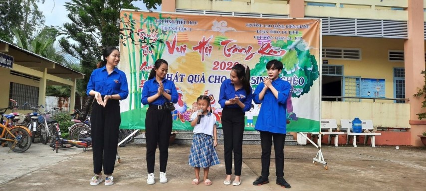 Thực hiện theo kế hoạch số 07-KH/ĐTN của Đoàn khoa Du lịch “Tổ chức các hoạt động thiện nguyện, tặng quà cho trẻ em thiếu nhi chào đón Trung Thu 2020”, đồng thời nhằm tạo ra không khí của một mùa Tết Trung Thu ấm áp, đong đầy tình yêu thương, vào ngày 30/9/2020, Chi đoàn Quản trị khách sạn 3 và Chi đoàn Quản trị khách sạn 4 - CĐK12 đã phối hợp tổ chức chương trình giao lưu với các em học sinh của trường Tiểu học Thạnh Lộc 1 (xã Thạnh Lộc, huyện Châu Thành, tỉnh Kiên Giang).