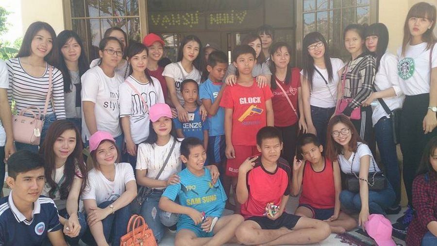 Các bạn chụp ảnh lưu niệm với các em trong Trung tâm