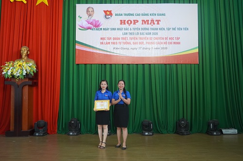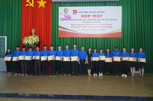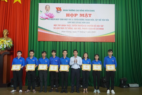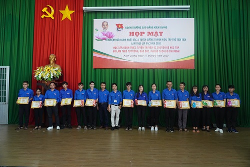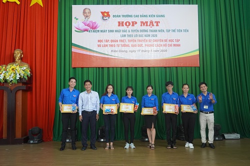 Sáng ngày 17/5/2020, Đoàn trường Cao đẳng Kiên Giang tổ chức Họp mặt, tuyên dương thanh niên, tập thể tiên tiến làm theo lời Bác năm 2020; học tập, quán triệt, tuyên truyền 02 chuyên đề học tập và làm theo tư tưởng, đạo đức, phong cách Hồ Chí Minh nhân kỷ niệm 130 năm ngày sinh nhật Bác. Bên cạnh đó, chương trình được tổ chức nhằm lập thành tích chào mừng Đại hội Đảng bộ trường Cao đẳng Kiên Giang lần thứ I, nhiệm kỳ 2020 – 2025.