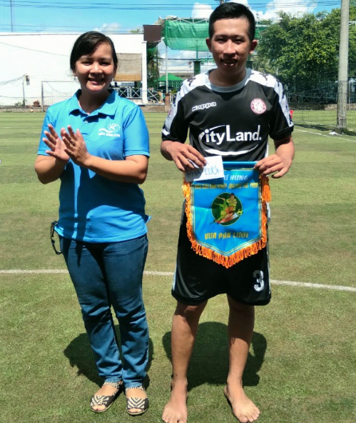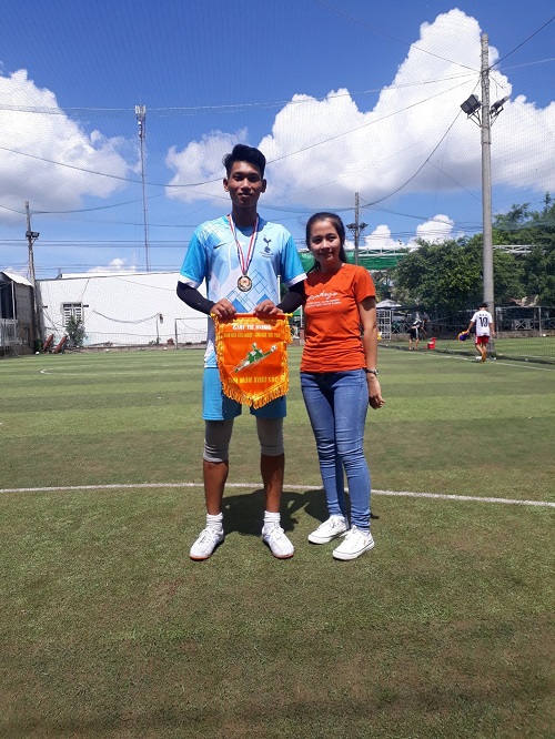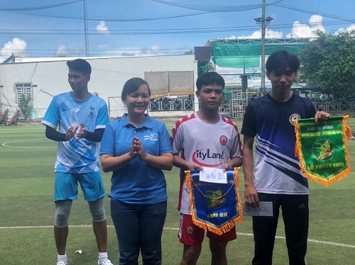 Cô Nguyễn Thị Huỳnh Giao trao giải Thủ môn xuất sắc cho bạn Giang Ngọc Thái Hòa