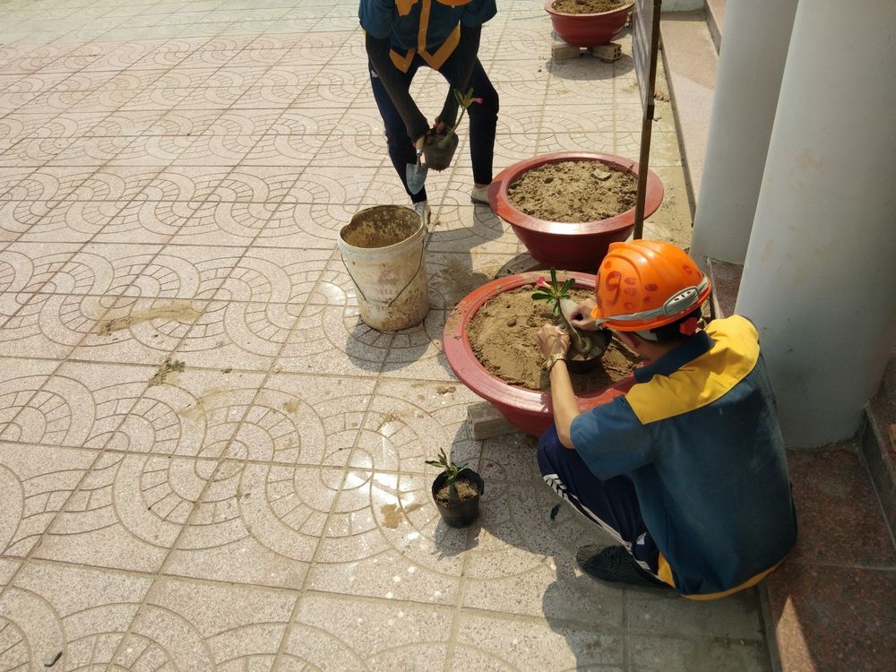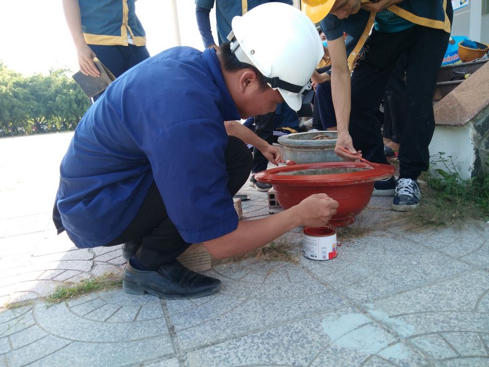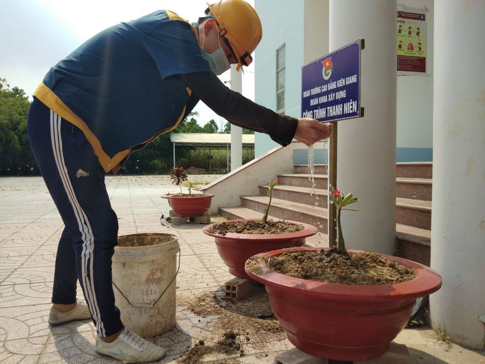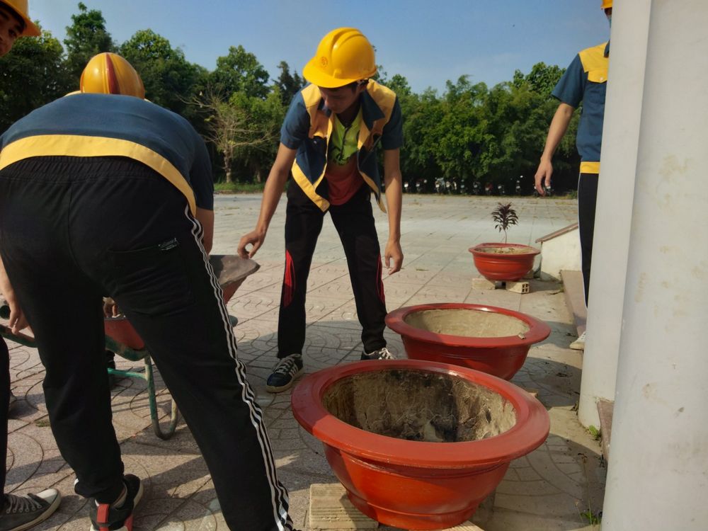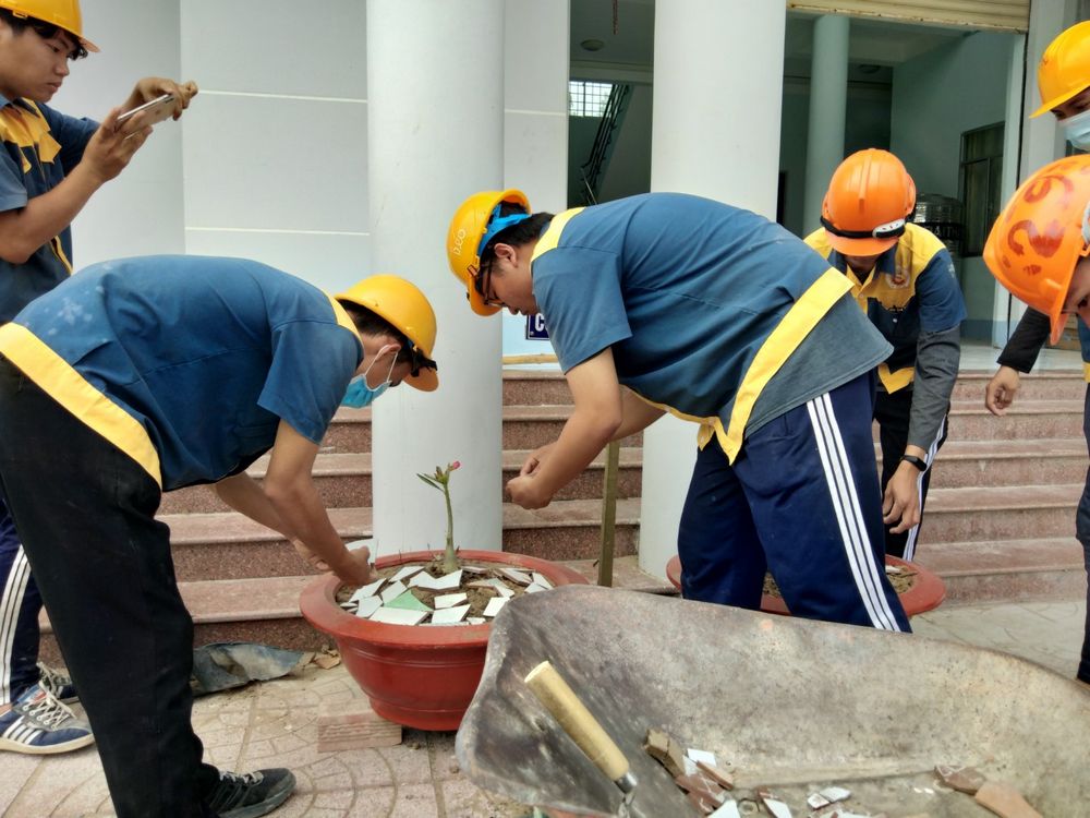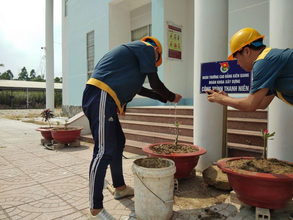 Với sự tham gia của 30 lượt đoàn viên, thanh niên chủ yếu đến từ Chi đoàn Xây dựng CĐK14, qua hơn 03 ngày công, đoàn khoa đã trồng và chăm sóc 8 cây hoa sứ vào các chậu hoa đã làm trước đó, tổng giá trị của công trình khoảng 800.000 đồng được trích từ quỹ đoàn của lớp Xây dựng CĐK14 và quỹ bán chậu hoa kiểng của BCH đoàn khoa.