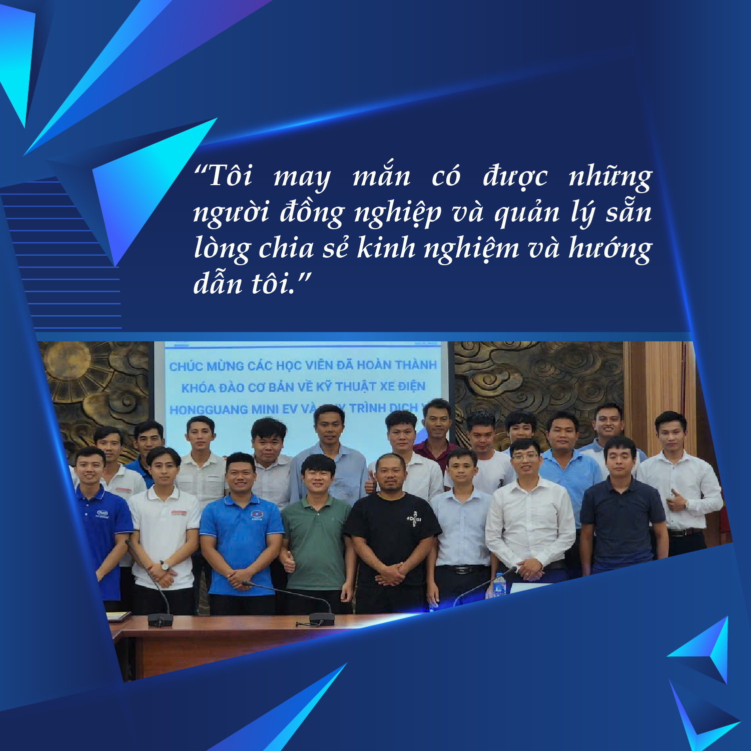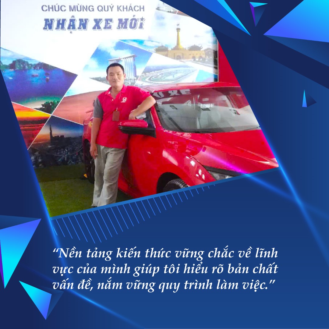 Từ năm 2019, Tuấn chính thức quay về với niềm đam mê ô tô, lĩnh vực mà Tuấn gắn bó từ những ngày đầu. Bạn ấy lần lượt đảm nhiệm các vị trí từ kỹ thuật viên, cố vấn dịch vụ đến quản lý dịch vụ tại các hãng xe lớn như Honda, MG, Wuling và hiện nay là BYD Kiên Giang. Dù ở bất kỳ vị trí nào, Tuấn luôn chứng minh được năng lực bằng kết quả công việc và sự ghi nhận, khen thưởng từ doanh nghiệp. Chia sẻ về quãng thời gian trên, Tuấn cho biết: “Khi mới bắt đầu sự nghiệp, tôi thiếu kinh nghiệm thực tế so với yêu cầu của công việc. Điều này khiến tôi cảm thấy thiếu tự tin và gặp khó khăn trong việc xử lý một số tình huống phức tạp. Nhưng nhờ những kiến thức, kỹ năng đã được trang bị và tinh thần học hỏi, tôi dần trở nên tự tin và phát huy năng lực hơn. Ngoài kiến thức, tay nghề, quãng thời gian học tập tại KGC còn mang lại cho tôi vô số bài học, ảnh hưởng sâu sắc đến quá trình làm việc và cuộc sống sau này”.