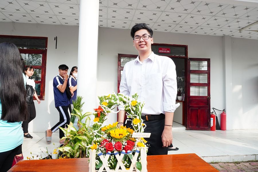 Thầy Hồ Minh Triết - Đại diện cựu cán bộ, giáo viên nhà trường phát biểu cảm tưởng