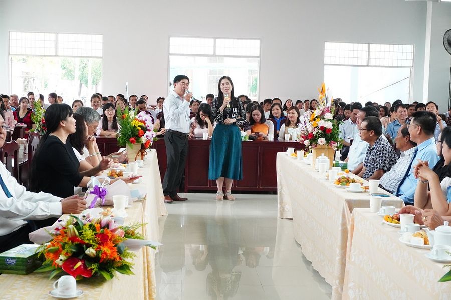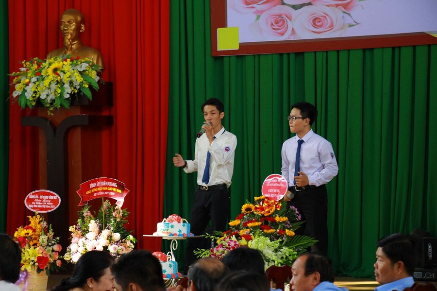 Tham dự buổi họp mặt có sự hiện diện của các nhà giáo lão thành đã nghỉ hưu, Ban Giám hiệu cùng tập thể cán bộ, giáo viên, học sinh, sinh viên hiện đang công tác và học tập tại nhà trường. Nhân ngày họp mặt, tiến sĩ Nguyễn Minh Quân - Bí thư Đảng ủy, hiệu trưởng nhà trường đã có đôi lời phát biểu chúc mừng nhân ngày 20/11, đồng thời nhắn gửi, động viên các thầy cô giáo cùng nhau phát huy tinh thần đoàn kết để phấn đấu hoàn thành nhiệm vụ năm học 2019-2020. Bên cạnh đó, để tỏ lòng biết ơn, nhà trường đã gửi tặng quà lưu niệm đến quý thầy cô là cựu Ban Giám hiệu, cựu cán bộ, giáo viên, những người có nhiều năm công tác và đóng góp cho sự phát triển chung của nhà trường. Buổi họp mặt dường như càng lắng đọng hơn khi đại diện nhà giáo lão thành phát biểu cảm tưởng và đại diện học sinh, sinh viên chia sẻ những cảm xúc chân thành, lời tri ân sâu sắc đến quý thầy cô cùng với lời hứa sẽ cố gắng học tập trở thành một thế hệ trẻ tự tin, năng động, sáng tạo, nhiệt huyết, xứng đáng với công lao dạy dỗ của những “người đưa đò” thầm lặng.