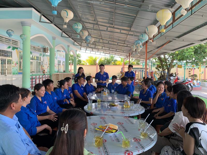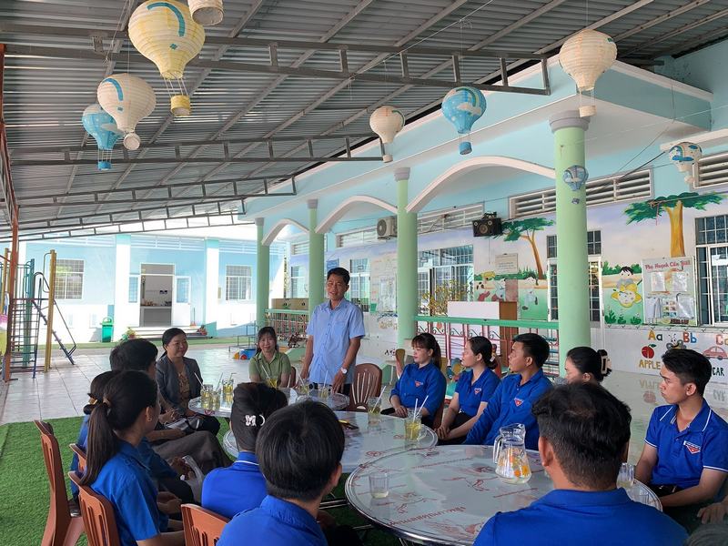 Đoàn đã đến thăm nơi làm việc của các đội hình trong cơ sở trường mầm non Bình Minh (xã Bình Minh, huyện Vĩnh Thuận), quý thầy cô và các chiến sỹ đã có những chia sẻ hết sức chân thành và đong đầy tình nghĩa.