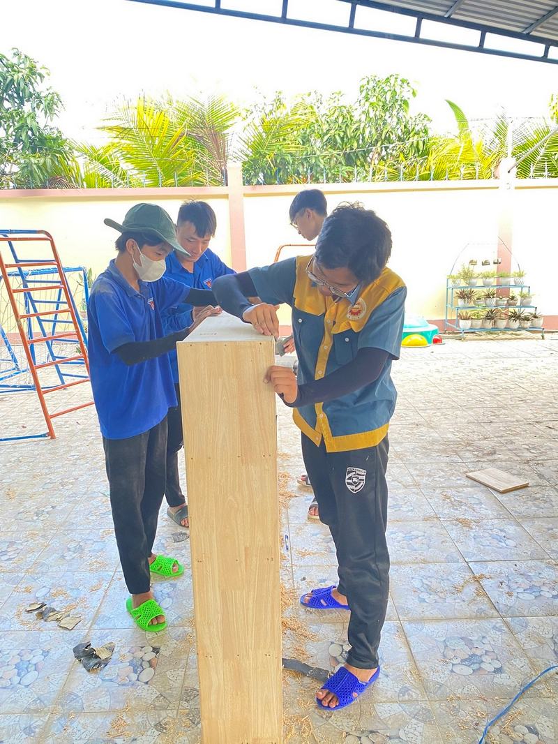 + Đội Xây dựng: Hoàn thành 90% 4 kệ sách, hoàn thành 50% bàn và ghế đọc sách, hoàn thành 60% xích đu ngồi đọc sách cho 02 công trình không gian đọc sách.