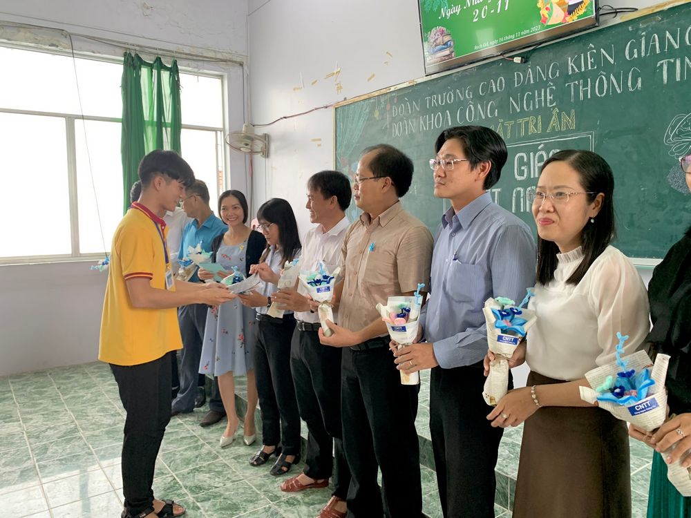 Trong không khí trang trọng và ấm cúng, các bạn sinh viên từ các khóa cũ và mới đã có cơ hội thể hiện lòng biết ơn của mình thông qua các bài phát biểu tri ân. Đồng thời, đại diện lãnh đạo khoa Công nghệ thông tin cũng gửi gắm lời chúc Chào mừng Ngày Nhà giáo Việt Nam đến các thầy cô và lời chia sẻ chân tình đến các bạn sinh viên. Lời tri ân chân thành được truyền đạt đến thầy cô, cùng với những món quà ý nghĩa như bánh kem từ cựu sinh viên khóa 14 và tấm thiệp, bó hoa tươi thắm do chính tay các bạn sinh viên làm. Điều này là minh chứng cho tình cảm sâu sắc và lòng biết ơn không ngừng của sinh viên dành cho những người lái đò thấm lặng. Cuối buổi, mọi người đã cùng nhau thưởng thức những tiết mục văn nghệ do giảng viên trong khoa thể hiện. Những tiết mục này không chỉ mang đến niềm vui mà còn là cơ hội để sinh viên, giảng viên khoa gắn kết với nhau.