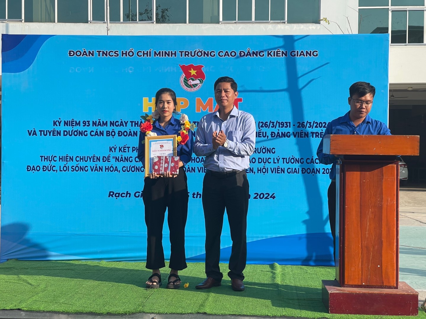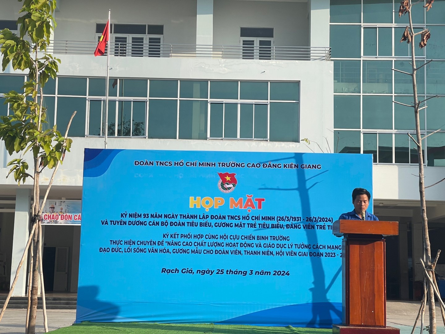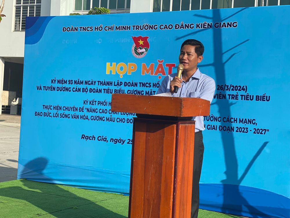 Sáng ngày 25/3/2024, hòa chung với không khí tưng bừng, phấn khởi đón chào kỷ niệm 93 năm Ngày thành lập Đoàn TNCS Hồ Chí Minh (26/3/1931-26/3/2024), Đoàn trường Cao đẳng Kiên Giang long trọng tổ chức buổi Họp mặt Kỷ niệm Ngày thành lập Đoàn (26/3) gắn với tuyên dương Đảng viên trẻ tiêu biểu, Cán bộ đoàn tiêu biểu, Gương mặt trẻ tiêu biểu trên các lĩnh vực cấp trường năm 2024.