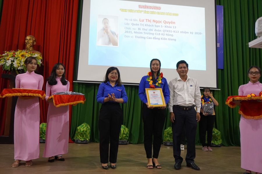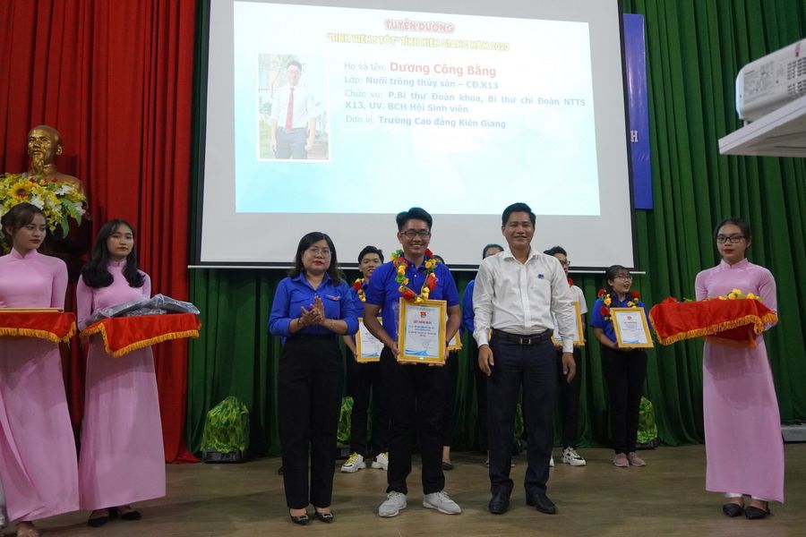 Trong buổi họp mặt, để ghi nhận và biểu dương sự nỗ lực, phấn đấu của các cá nhân, tập thể trong học tập, rèn luyện và tham gia các hoạt động xã hội, Đoàn Thanh niên - Hội sinh viên trường Cao đẳng Kiên Giang đã tuyên dương các cá nhân và tập thể xuất sắc đạt danh hiệu danh hiệu “Sinh viên 5 tốt”. Trong năm 2020, toàn tỉnh Kiên Giang có 32 cá nhân đạt danh hiệu Sinh viên 5 tốt. Trong đó, trường Cao đẳng Kiên Giang đã có 13 cá nhân xuất sắc đạt các tiêu chí của danh hiệu “Sinh viên 5 tốt” và cũng chỉ có đơn vị nhà trường có 2 tập thể đạt danh hiệu “Tập thể Sinh viên 5 tốt” cấp tỉnh. Đây thật sự là một thành tích đáng được ghi nhận, vinh danh của các cá nhân và tập thể trên.