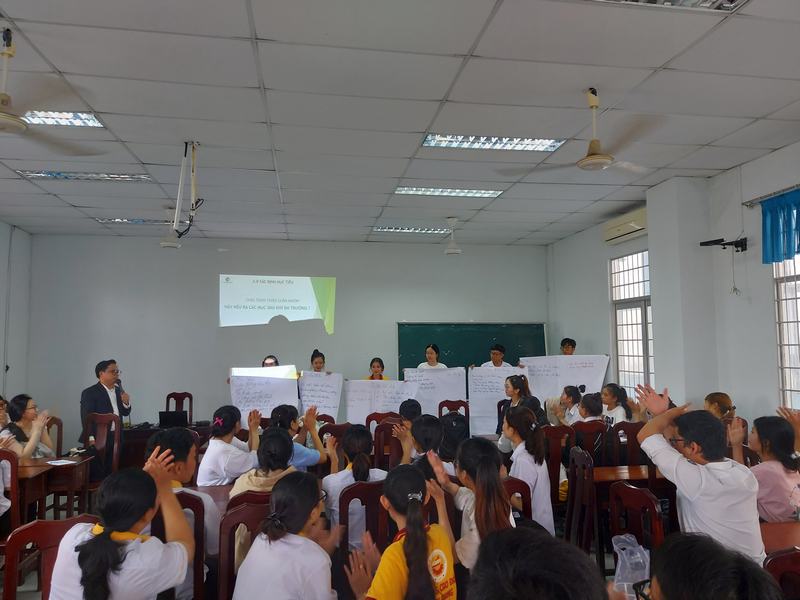 Chiều ngày 07/10/2022, Khoa Kinh tế - Luật đã phối hợp cùng Công ty Du lịch Vina Phú Quốc Travel tổ chức thành công buổi giao lưu sinh hoạt với chủ đề “Kỹ năng thiết lập mục tiêu” tại phòng Nghiên cứu của trường Cao đẳng Kiên Giang, với sự hiện diện của anh Nguyễn Vũ Khắc Huy (Tổng Giám đốc Công ty Du lịch Vina Phú Quốc Travel), chị Trần Thị Yến Nhi và anh Nguyễn Trường Giang (Phòng Kinh Doanh). Về phía Khoa, có sự tham dự của thầy Tống Văn Thắng – Trưởng khoa Kinh tế - Luật và trên 50 sinh viên.