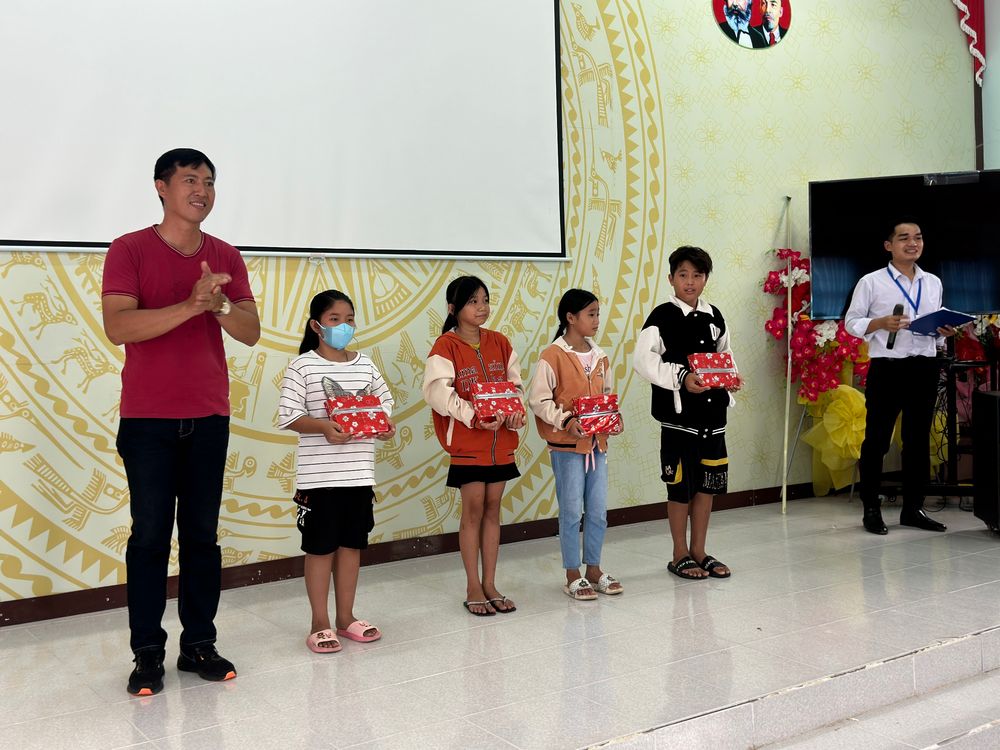 Các đại biểu tham dự và đại diện Câu lạc bộ trao tặng quà cho học sinh