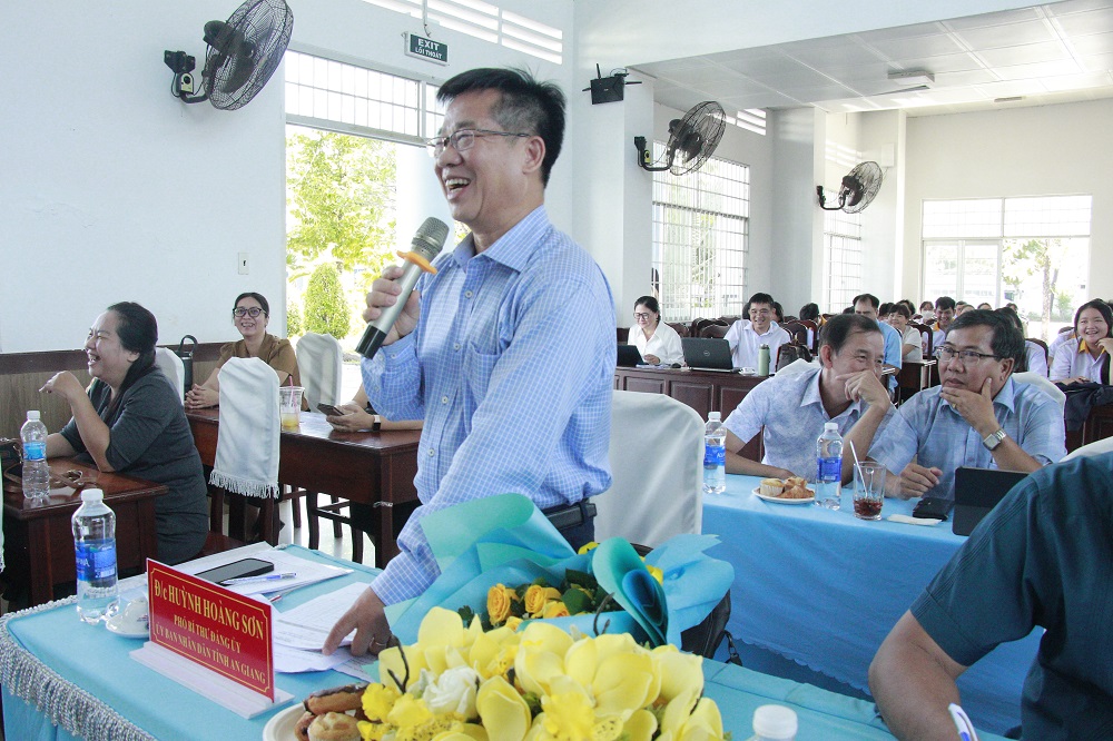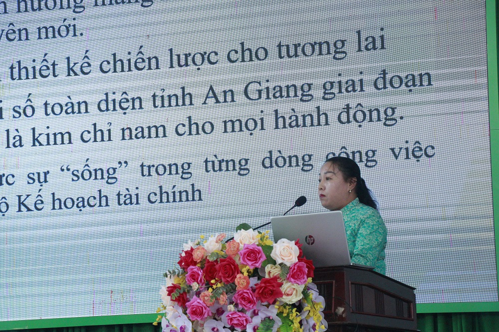 Đ/c Huỳnh Hoàng Sơn - Phó Bí thư Đảng ủy UBND tỉnh An Giang trao giải Ba cho đồng chí Nguyễn Thị Huỳnh Giao và Lê Thị Thu Nhã
