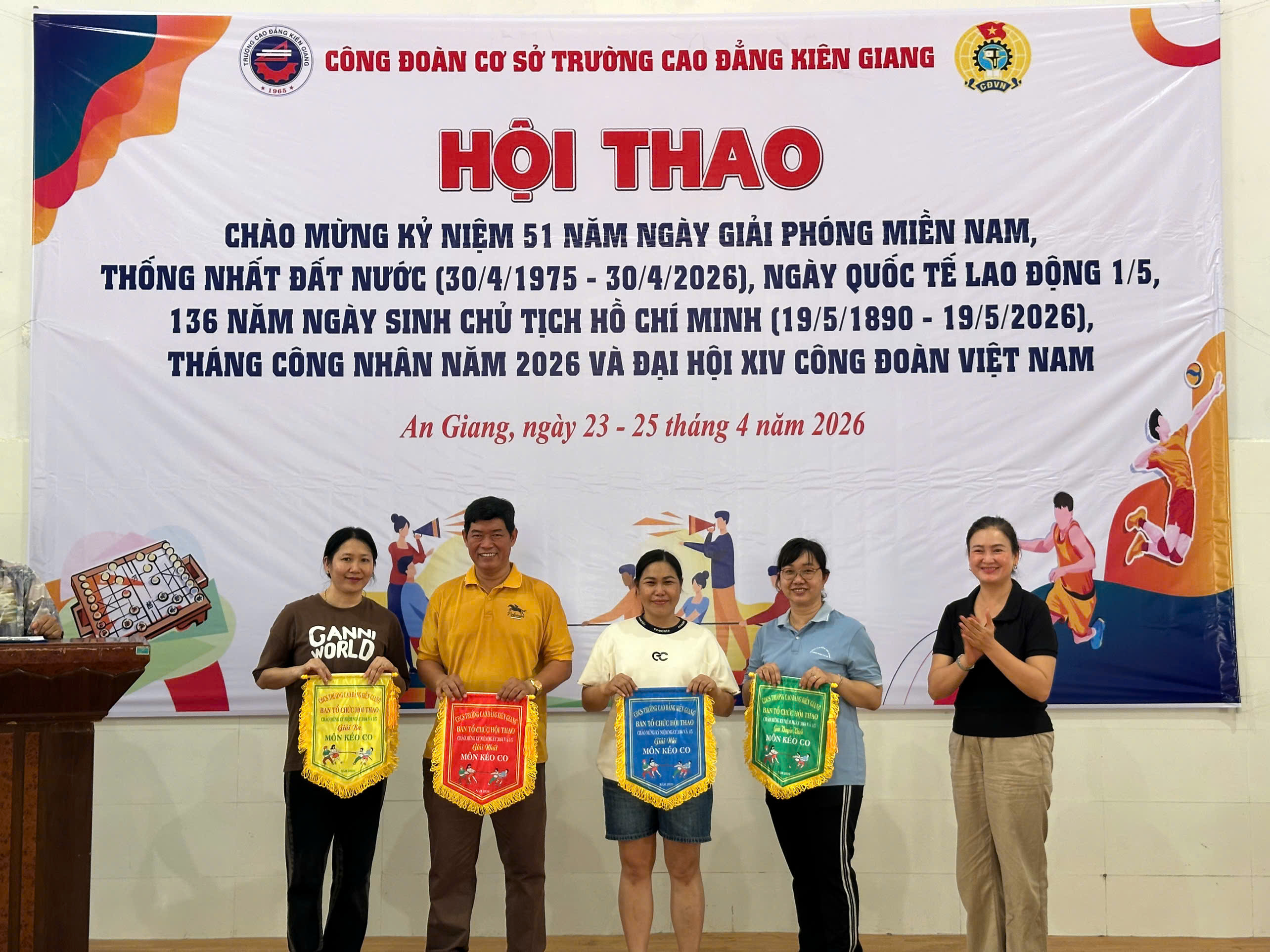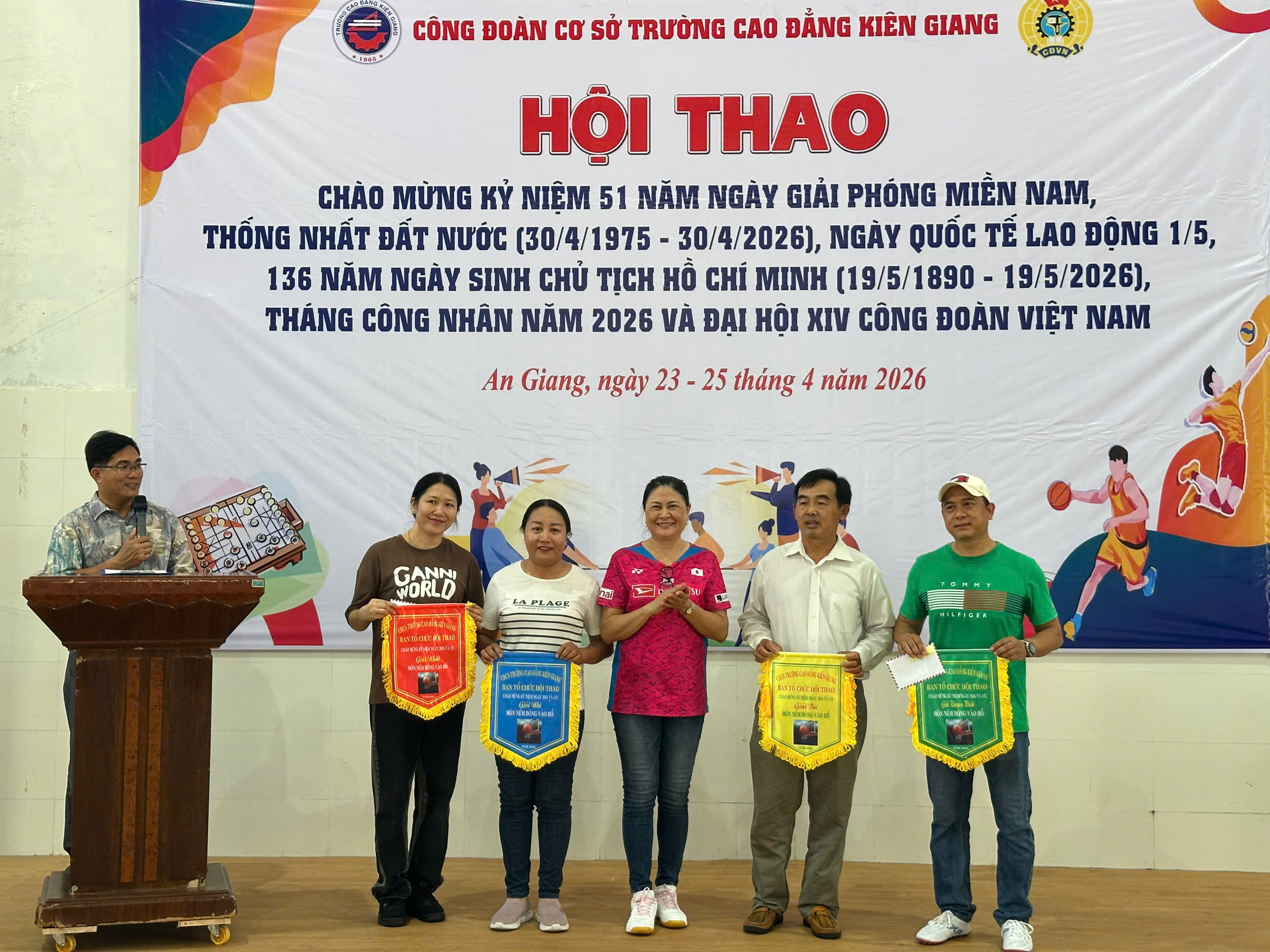 Hòa chung không khí vui tươi của cả nước chào mừng Ngày Giải phóng miền Nam, thống nhất đất nước (30/4/1975 - 30/4/2026), ngày Quốc tế Lao động 1/5 và kỷ niệm 136 năm ngày sinh Chủ tịch Hồ Chí Minh; Công đoàn trường Cao đẳng Kiên Giang đã tổ chức Hội thao dành cho cán bộ, viên chức và người lao động (CBVCNLĐ) nhằm hưởng ứng phong trào “Rèn luyện thân thể theo gương Bác Hồ vĩ đại”.