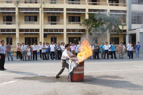 Tại phòng họp chuyên môn, nội dung của buổi tập huấn xoay quanh việc công bố và trao Quyết định thành lập các đội PCCC cơ sở của trường; triển khai các nghị định, thông tư liên quan đến công tác PCCC; danh sách phân công nhiệm vụ của các đội PCCC cơ sở; nội quy, quy chế hoạt động công tác PCCC và phương án chữa cháy cơ sở 1 của trường. Bên cạnh đó, các thành viên thuộc các đội PCCC cơ sở cũng được thực hành, luyện tập chữa cháy thực tế theo phương án đã xác định ngay tại sân trường và khu vực khoa Điện – Điện tử.