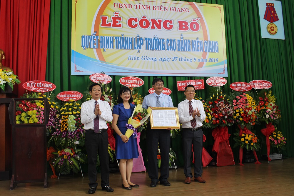 Vào lúc 9 giờ ngày 27/8/2018, tại Hội trường trường Cao đẳng Kinh tế - Kỹ thuật Kiên Giang, Ủy ban nhân dân tỉnh đã tổ chức Lễ công bố quyết định thành lập trường Cao đẳng Kiên Giang. Buổi lễ được tổ chức trong không khí trang trọng nhưng không kém phần gần gũi với sự góp mặt của toàn thể cán bộ viên chức của trường Cao đẳng Kinh tế - Kỹ thuật Kiên Giang và trường Cao đẳng Cộng đồng Kiên Giang.