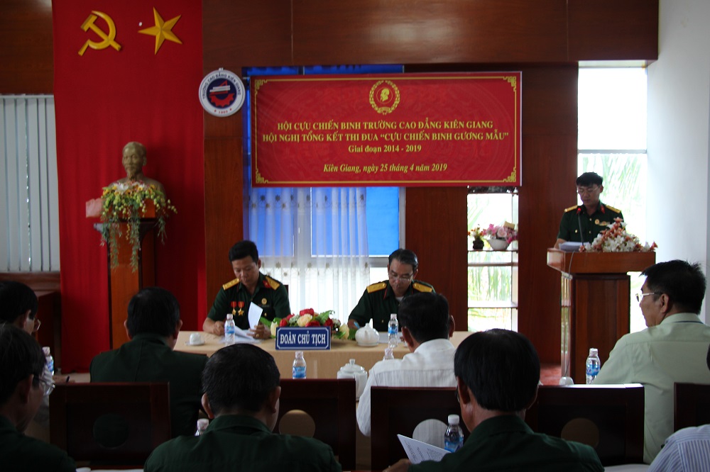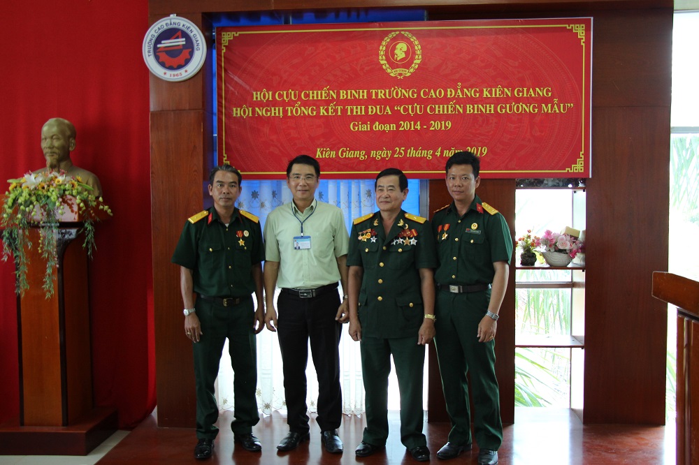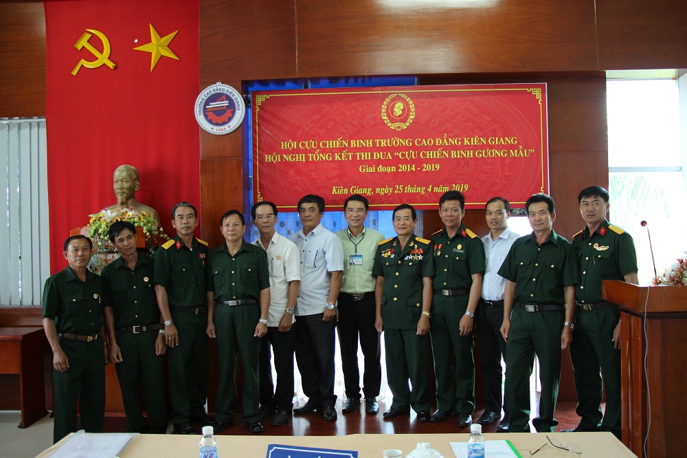Chiều ngày 25/04/2019, Hội Cựu chiến binh trường Cao đẳng Kiên Giang đã tổ chức Hội nghị tổng kết phong trào thi đua “Cựu chiến binh gương mẫu” 5 năm, giai đoạn 2014 – 2019 và phương hướng nhiệm vụ, giai đoạn 2019 - 2024. Đến dự có đồng chí Cao Hoàng Dung - Ủy viên BCH Đảng ủy, Chủ tịch Hội Cựu chiến binh Đảng ủy khối CCQ tỉnh Kiên Giang, Đảng ủy, Ban Giám hiệu nhà trường cùng lãnh đạo các phòng/trung tâm, Công đoàn cơ sở, Hội Sinh viên và 9 hội viên Cựu chiến binh tiêu biểu của trường.