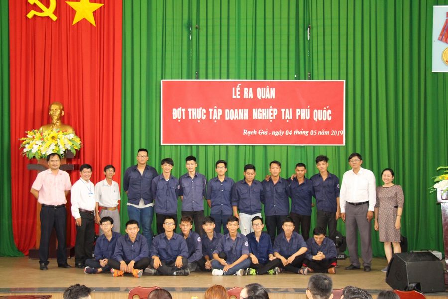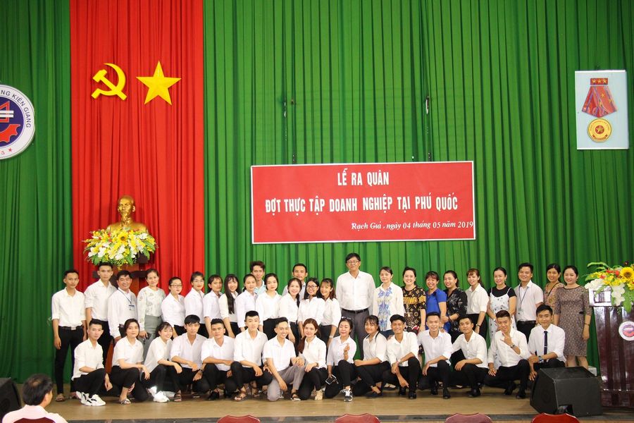 Chiều nay, ngày 04/5/2019, Trường Cao đẳng Kiên Giang tổ chức Lễ Ra quân thực tập cho 133 sinh viên chuyên ngành Du lịch và 30 sinh viên chuyên ngành Điện – Điện tử - Cao đẳng khóa 11, với thời gian thực tập gần 3 tháng tại Phú Quốc (sinh viên Du lịch được phân công thực tập ở 18 doanh nghiệp, bắt đầu thực tập từ ngày 06/5 đến 28/7/2019 và sinh viên Điện – Điện tử được phân công thực tập ở 2 doanh nghiệp, bắt đầu thực tập từ ngày 05/5 đến 05/8/2019)