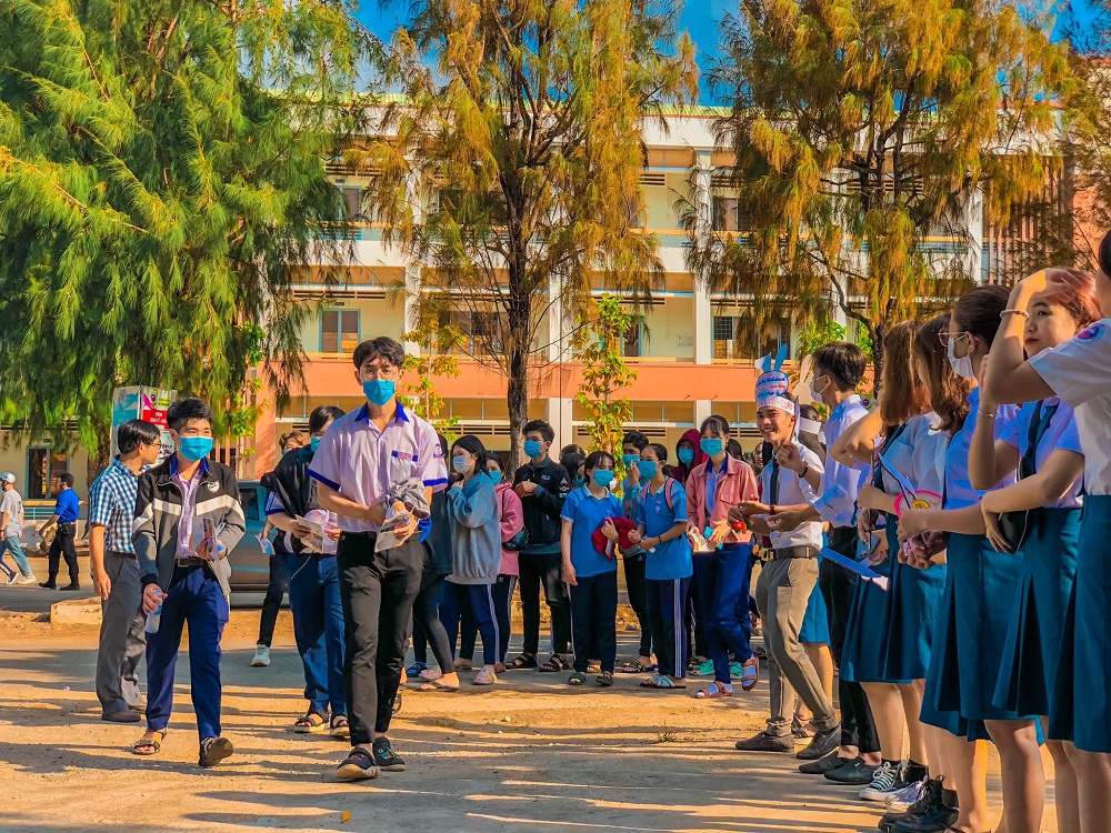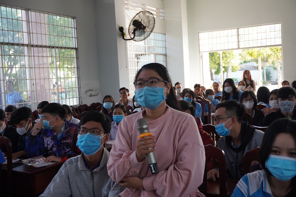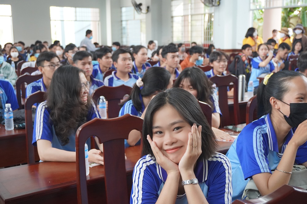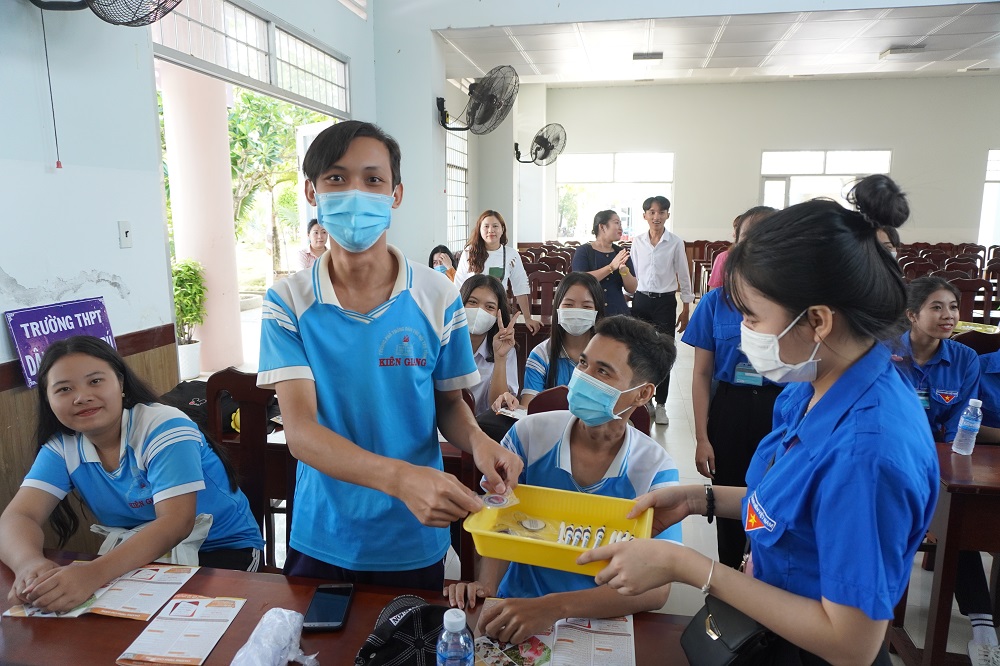 Ngay lúc này, sân trường Cao đẳng Kiên Giang vô cùng náo nhiệt bởi những tiếng cười trong sáng, hồn nhiên của các em học sinh THPT hoà cùng không khí vui tươi, nhộn nhịp của chương trình Tư vấn - hướng nghiệp 2021. Tại chương trình, các em học sinh được nhà trường giới thiệu các nội dung xoay quanh các vấn đề như: Định hướng ngành nghề, tư vấn hướng nghiệp, môi trường học tập, cơ hội việc làm,.. Không chỉ mang đến các thông tin hữu ích, trường Cao đẳng Kiên Giang còn mang đến cho các em học sinh những phần quà vô cùng đáng yêu, thông qua phần giao lưu trả lời các câu hỏi.