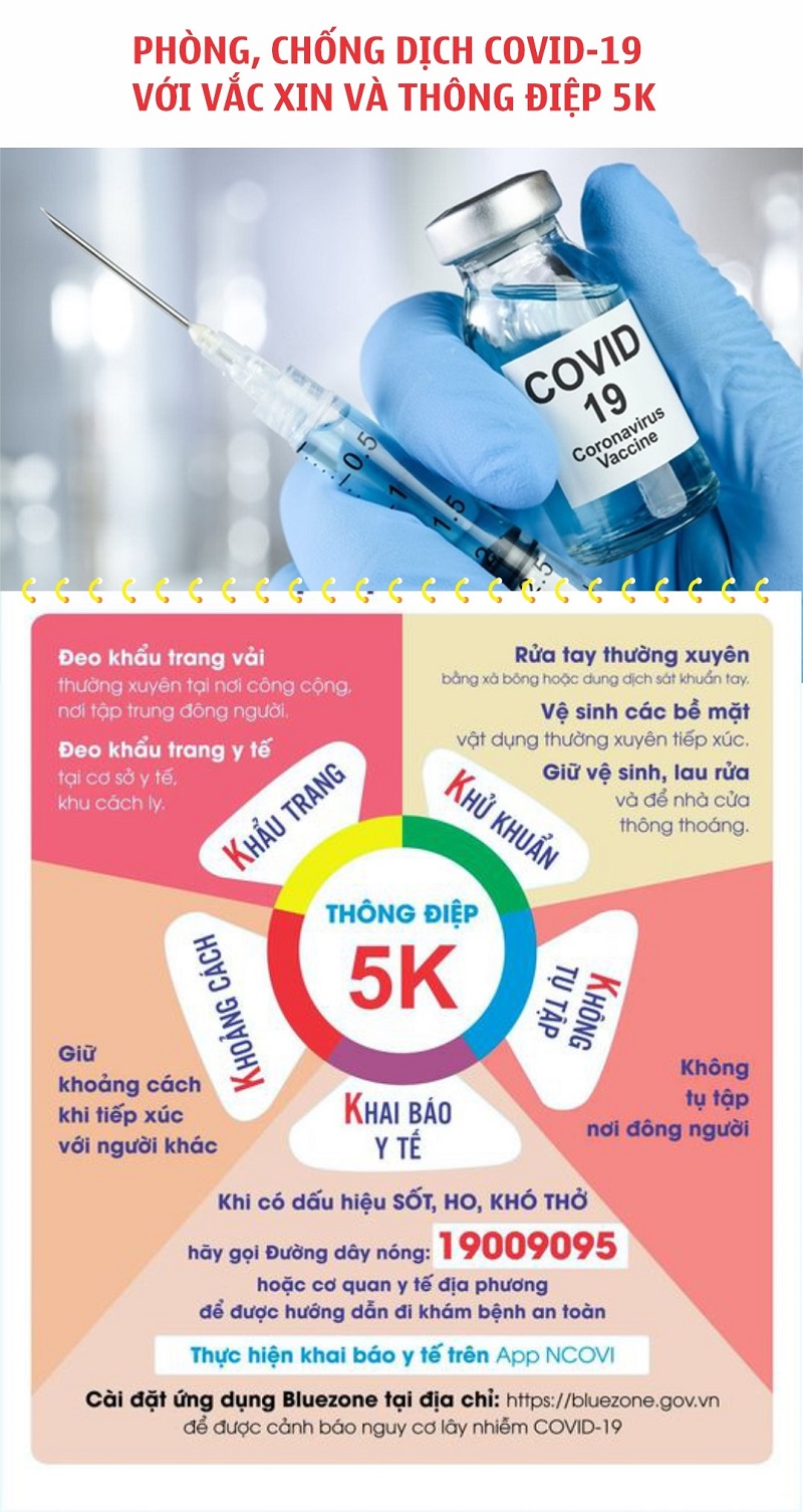 Trước diễn biến phức tạp của dịch COVID-19 trên thế giới và tại Việt Nam, Lãnh đạo nhà trường yêu cầu cán bộ, giáo viên khi tham gia tiêm ngừa phải thực hiện nghiêm 5K, để ngăn chặn sự lây lan của dịch bệnh.