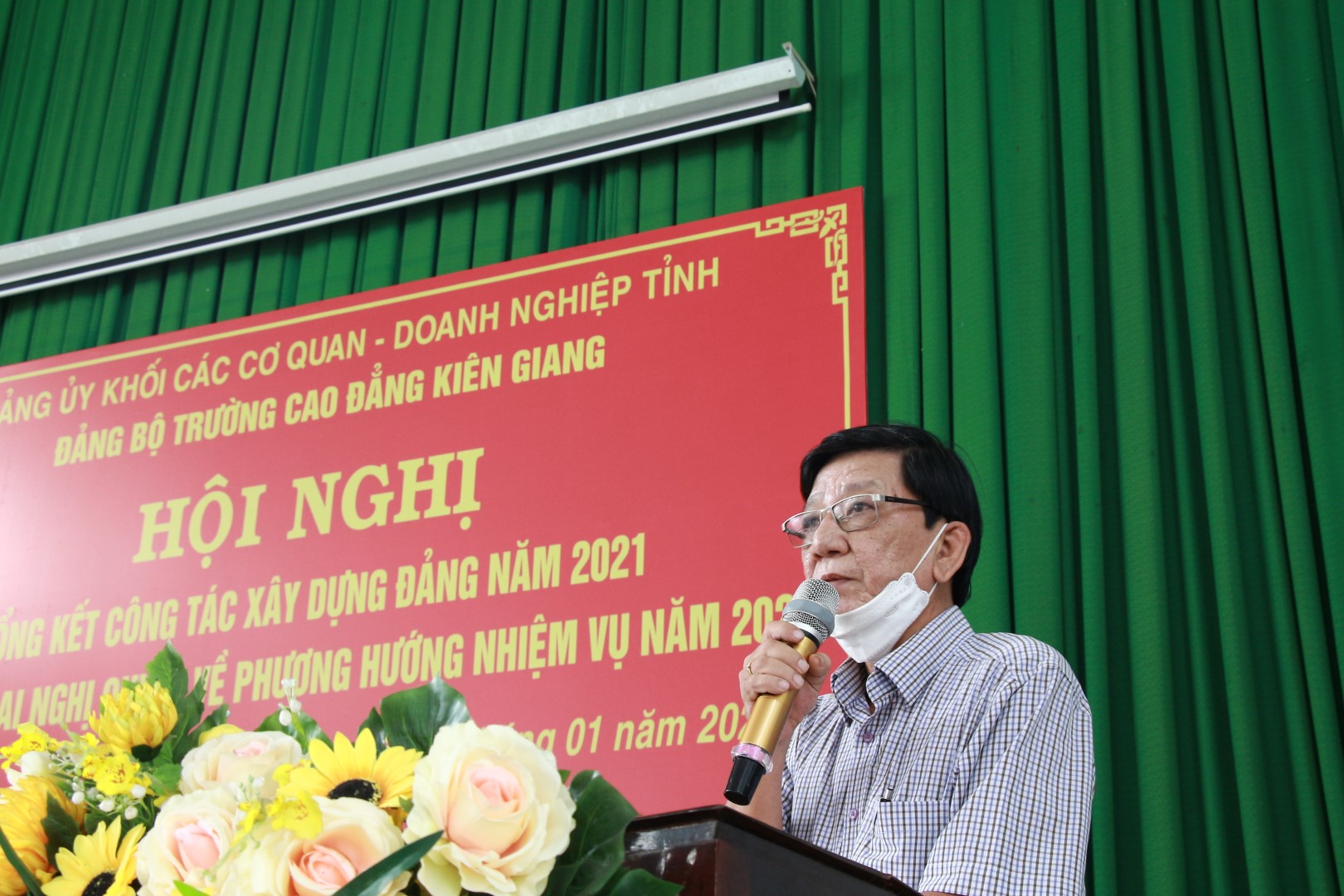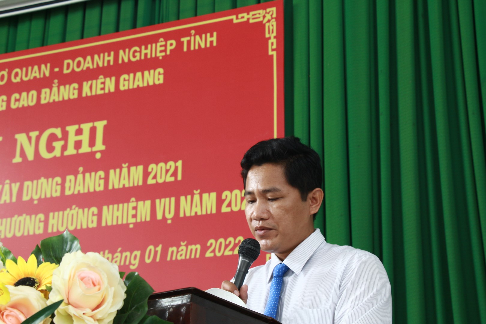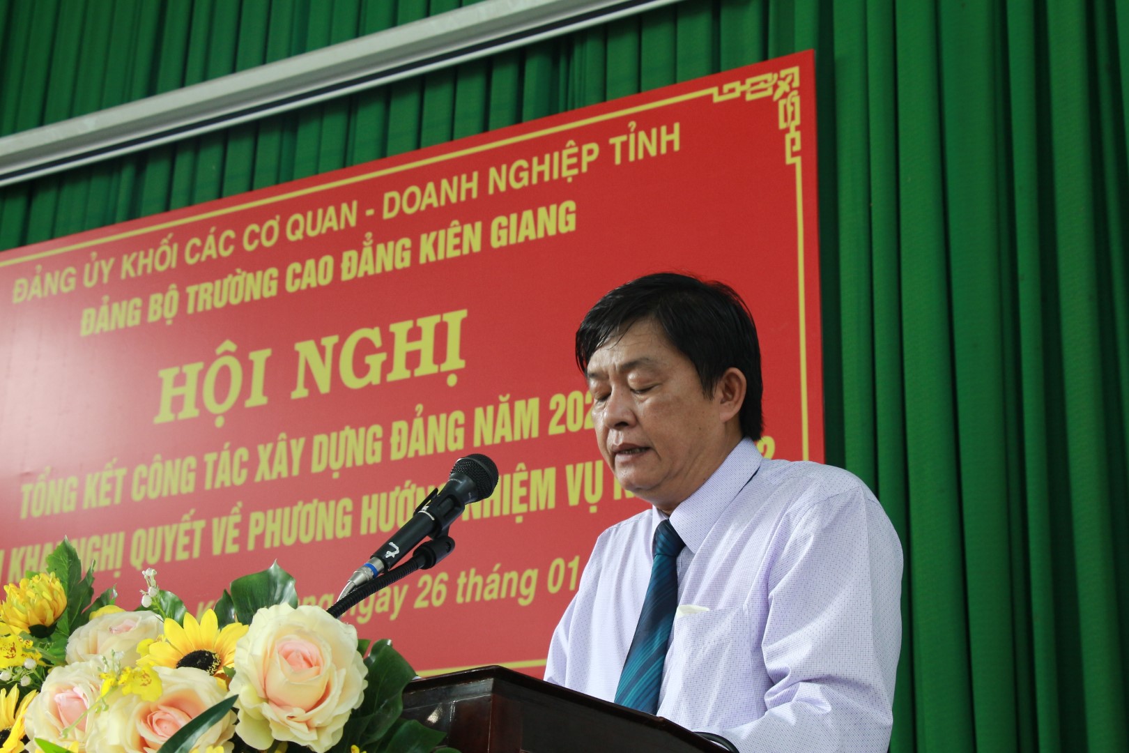 Nhằm đánh giá kết quả thực hiện công tác xây dựng Đảng năm 2021, triển khai chương trình công tác năm 2022 đạt hiệu quả, ngày 26/01/2022, Đảng ủy trường Cao đẳng Kiên Giang long trọng tổ chức Hội nghị tổng kết công tác xây dựng Đảng năm 2021 và chương trình công tác năm 2022. Tham dự hội nghị có đồng chí Huỳnh Hoàng Sơn - Phó Bí thư Đảng ủy khối các Cơ quan-Doanh nghiệp tỉnh Kiên Giang cùng các đồng chí Đảng uỷ viên, Đảng viên, lãnh đạo các đơn vị trong toàn trường.